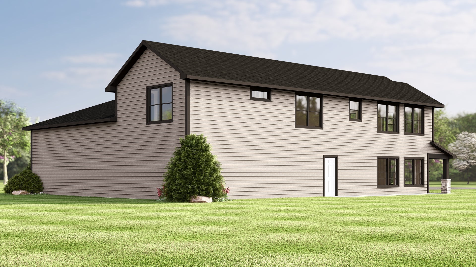 Upstairs, the private second-floor master suite provides a peaceful retreat complete with a walk-in closet, while a home office and flexible living spaces support today’s work-from-home lifestyle. A massive garage and workshop add exceptional versatility, perfect for hobbies, storage, or projects. With its steep rooflines, farmhouse charm, and modern interior flow, this plan is ideal for homeowners seeking character, comfort, and practical space.