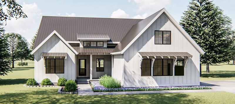 The design emphasizes outdoor living with both a covered front and back porch, ideal for enjoying serene views. Two additional bedrooms are thoughtfully placed in a split layout for privacy. A mudroom and a side-load garage complete this charming home, ensuring practicality without sacrificing style. This home is perfect for those seeking a serene retreat by the creek.