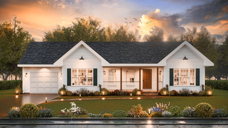 This charming 1,101 sq ft one-story home offers a functional layout with everything you need for comfortable living. Featuring three bedrooms and two full bathrooms, the design includes a private first-floor master suite and a spacious walk-in pantry off the kitchen—perfect for staying organized and efficient. With 8-foot ceilings and a stick-framed 8:12 pitch roof, the home feels open while maintaining a cozy, grounded feel.