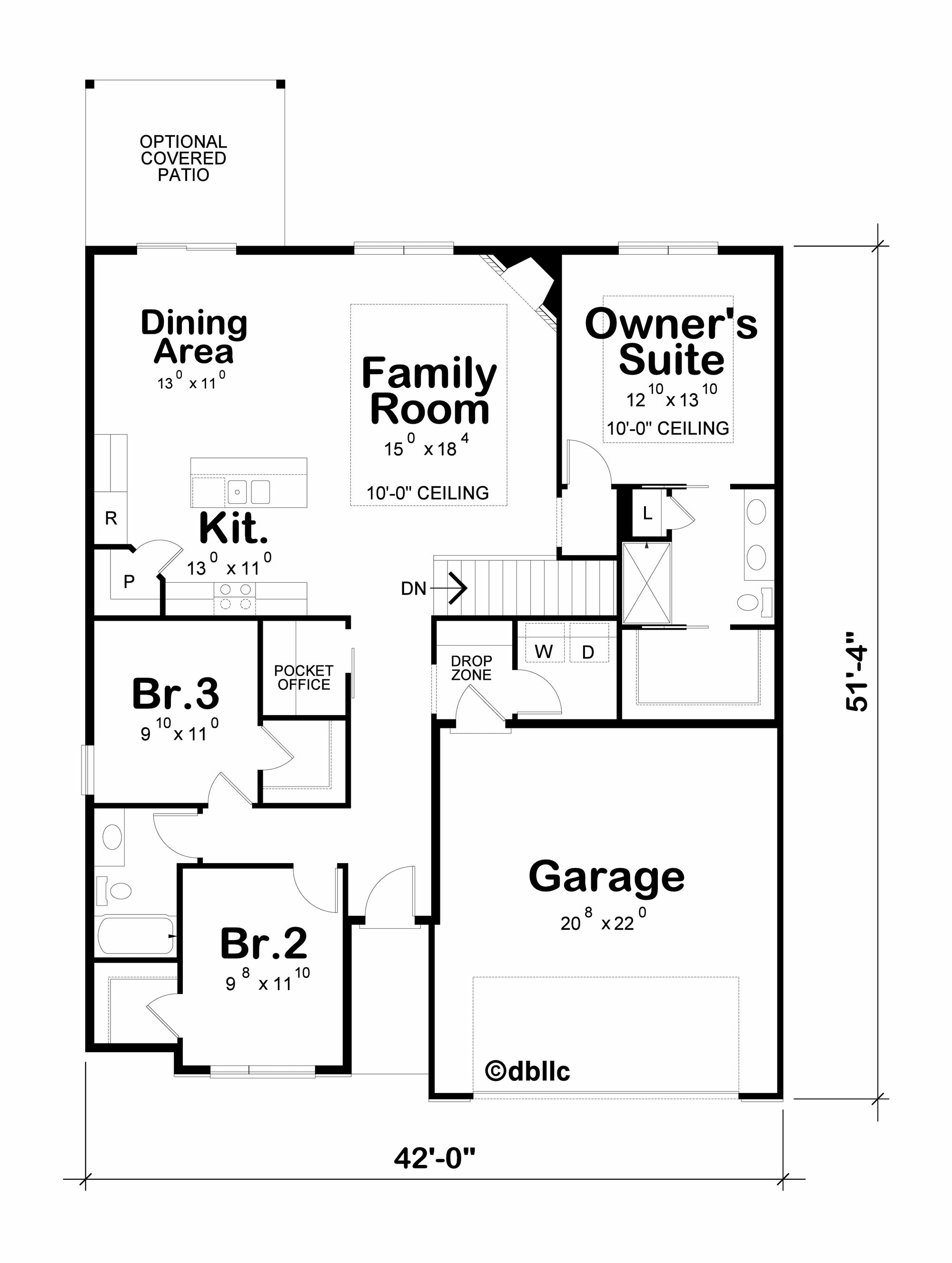 This thoughtfully designed 1,603-square-foot home with three bedrooms and two bathrooms features a distinctive shed roof over the garage for added character. The home’s open floor plan seamlessly connects the family room, dining area, and kitchen, with a cozy corner fireplace enhancing the living space. The kitchen, complete with a central island, offers ample meal prep space, while sliding doors off the dining area open to an optional covered patio, perfect for outdoor relaxation. A barn door leads to a pocket office, providing a quiet space for work or study.