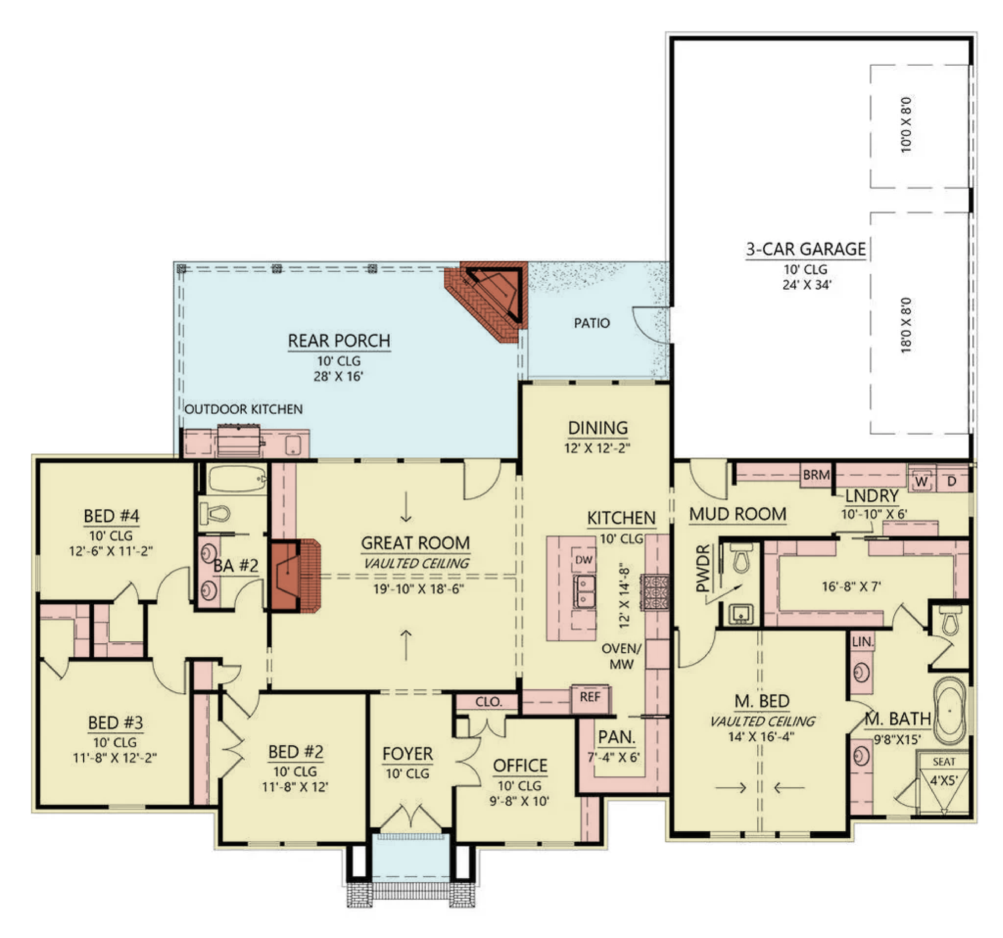 Welcome to this delightful 2,377 sq ft residence, thoughtfully designed for both style and functionality. The expansive first floor offers a spacious layout with a ceiling height of 10 feet, creating an inviting atmosphere for family gatherings and entertaining. This home features four well-appointed bedrooms, making it ideal for growing families or those seeking extra space. With two full bathrooms and one half bath, convenience is prioritized throughout the home. The total porch area of 494 sq ft provides a perfect outdoor retreat for relaxation and entertaining. A side-load garage measuring 845 sq ft accommodates three vehicles, ensuring ample storage and parking space. Constructed on a sturdy slab foundation with 2x4 wall framing, this home is both durable and low-maintenance. The attractive roof pitches of 10:12 and 12:12 add character to the design, while the overall dimensions of 76'-3'' in width and 68'-10'' in depth provide a spacious feel. This charming home is a perfect blend of comfort and style, making it a wonderful choice for modern living.