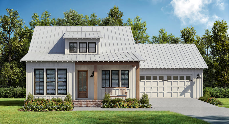 This charming farmhouse plan offers two bedrooms, two full baths, a full size laundry room, and a two car garage. The living, dining, and kitchen are all open for easy entertaining and plenty of windows for natural light and to take in those amazing views. This design offers 10' ceilings with a vaulted ceiling in the living/dining space.