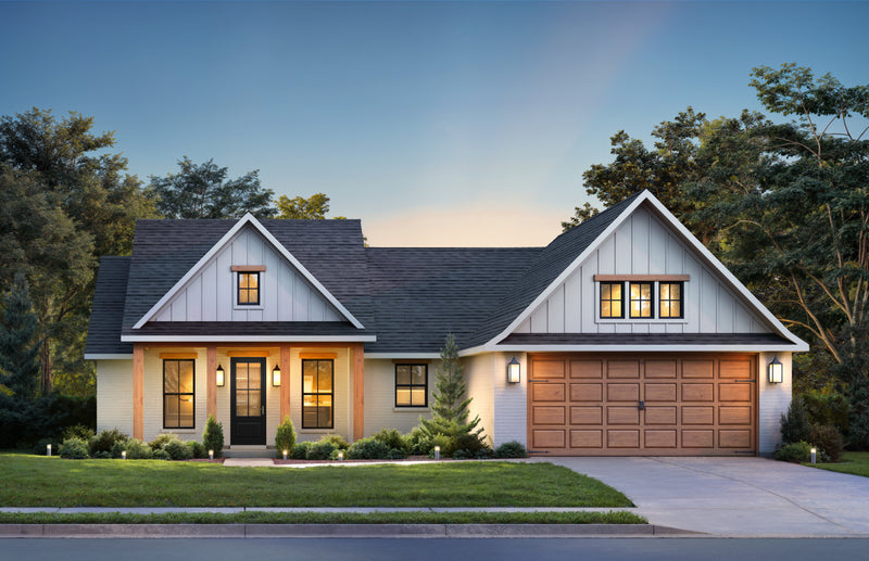 The split-bedroom design offers privacy, with the primary suite tucked away for quiet relaxation. Enjoy the luxury of a private bath and a walk-in closet, along with direct access to the laundry room for added ease. Outdoor living is just as inviting with a covered front porch and a rear porch ready for your personal touch. A two-car front-load garage and extra storage space complete this charming plan, all under a stylish stick-framed roof with 9:12 and 14:12 pitches. This home blends practical living with a welcoming aesthetic.