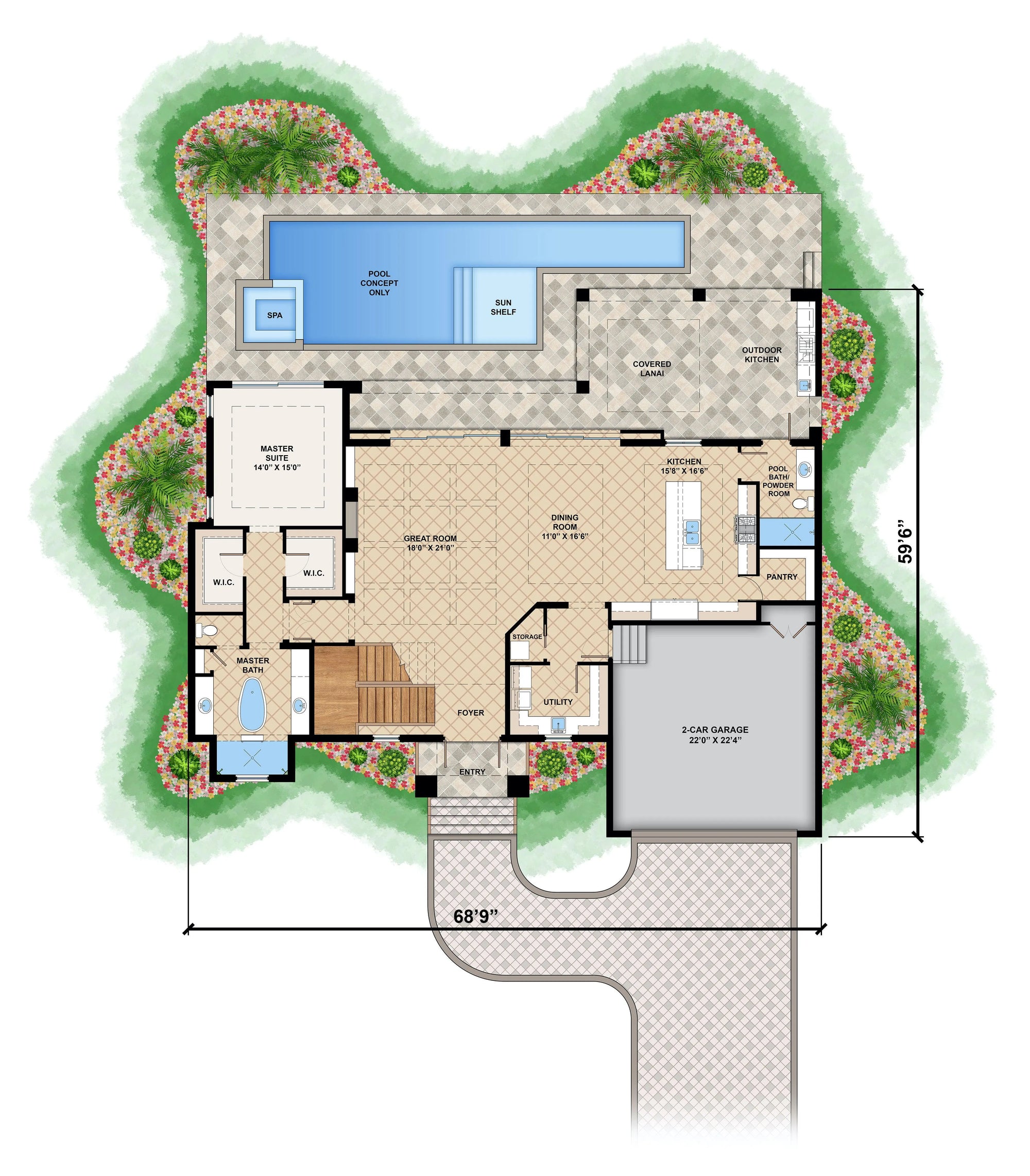 Introducing this 3,228 sq ft home offers a blend of luxury and functionality, featuring 4 bedrooms, 5 bathrooms, and a front-entry two-car garage with 543 sq ft of space. A stucco exterior with a covered front porch welcomes you inside to an expansive great room with an 11-foot, 4-inch ceiling. The kitchen is equipped with a central island, eating bar, and walk-in pantry, seamlessly connecting to the main living areas and an outdoor kitchen on the lanai, perfect for entertaining.
