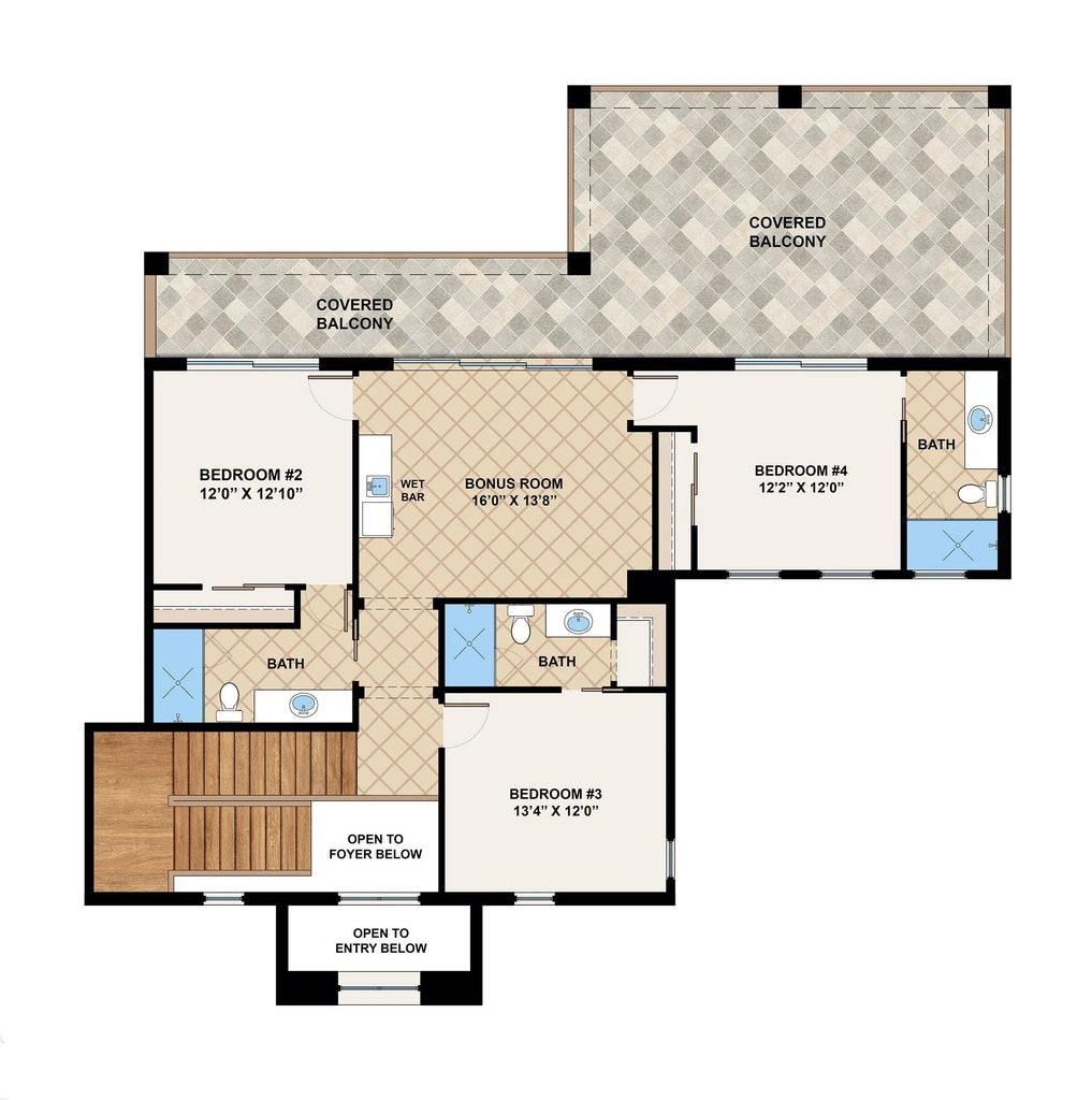 The first-floor owner's suite includes his-and-hers closets, a double-vanity bath, and direct access to the laundry room. Upstairs, a loft with balcony access overlooks the main level, and a bonus room offers flexible space for hobbies or guests. With ample storage, a split-bedroom design, and luxurious outdoor living areas, this home combines style and practicality for modern living.