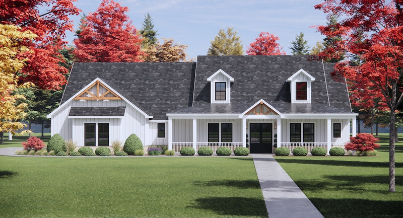 This modern farmhouse plan blends contemporary design with rustic charm, offering 3,131 square feet of heated living space. With 4 to 5 bedrooms, 3.5 baths, and an 895-square-foot, 3-car garage, this home provides ample room for family living and entertaining.