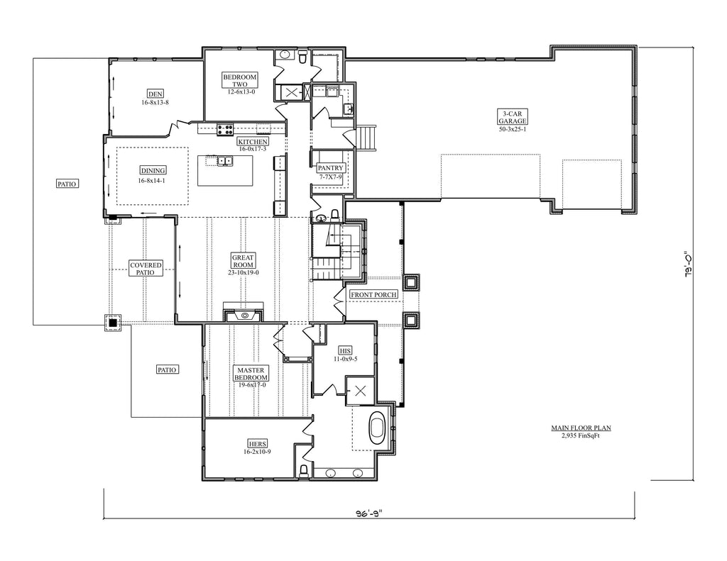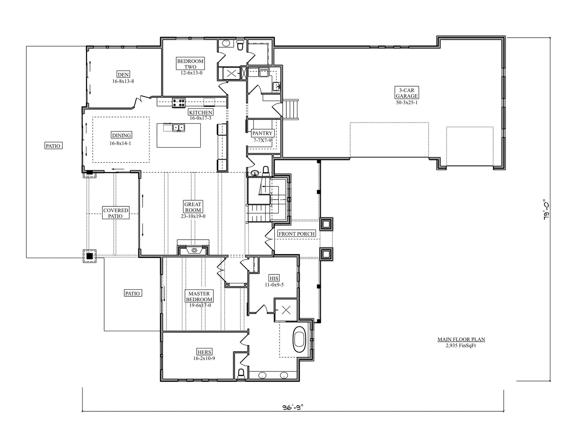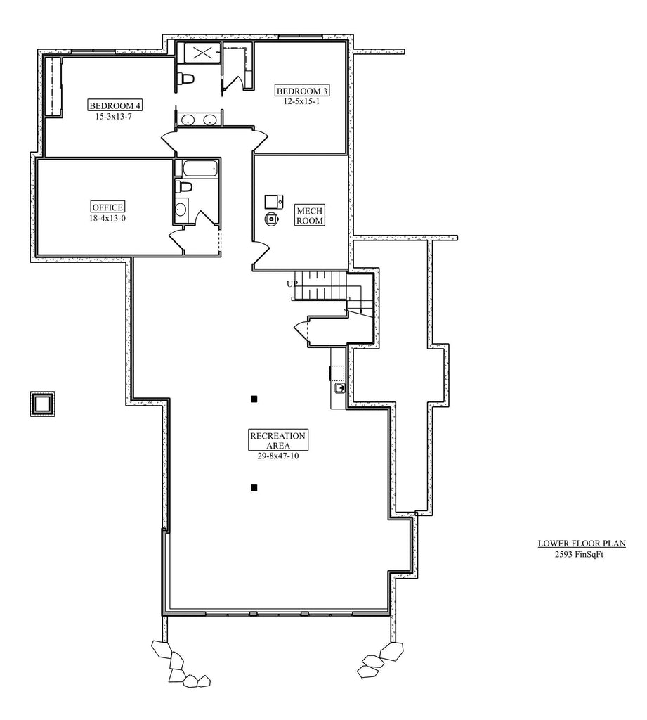 This luxurious home offers a generous total living area of 2,935 sq ft, featuring an expansive first floor of 2,935 sq ft and a substantial basement measuring 2,593 sq ft. With two well-appointed bedrooms and two full bathrooms, plus one half bathroom, this design provides ample space and comfort for families or guests.