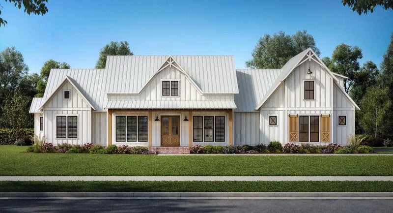 This beautifully designed home boasts a total living area of 2,951 sq ft, all on the first floor, along with a generous bonus room of 705 sq ft. The layout includes a total porch area of 1,005 sq ft, perfect for outdoor entertaining, and additional storage of 37 sq ft. The side-loaded garage offers 925 sq ft of space and accommodates three vehicles, making it ideal for families. With four bedrooms and three bathrooms, plus one half bathroom, this home is both functional and spacious. Built on a sturdy slab foundation with 2x4 wall framing and stick roof framing, it features a stylish roof pitch of 9:12. Measuring 89 feet 10 inches in width and 73 feet 9 inches in depth, the building height reaches 26 feet 4 inches, creating an open and inviting atmosphere. The first-floor ceiling height is an impressive 10 feet, complemented by a garage ceiling height of 10 feet and a bonus room height of 9 feet.