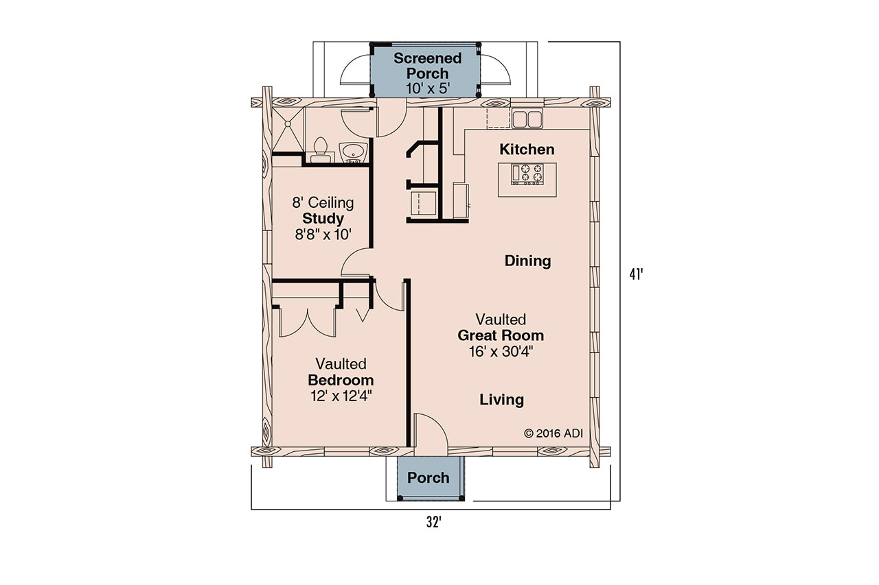 This inviting 1-bedroom log cabin combines rustic beauty with modern convenience in a thoughtfully designed 960-square-foot layout. The open-concept floor plan features a warm great room, a functional kitchen with a central island and eating bar, and a comfortable breakfast and formal dining area — perfect for both everyday living and entertaining. The first-floor master suite offers privacy and comfort, enhanced by the cabin’s natural log framing and cozy aesthetic.