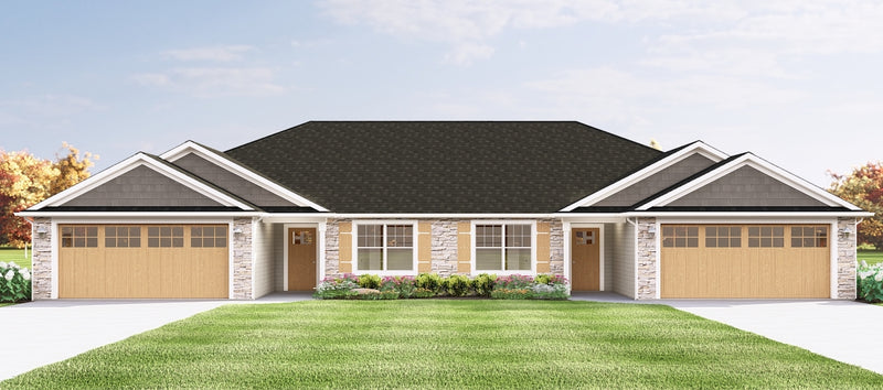 • This duplex house plan gives you 2 units each with 1,381 square feet of heated living space, 2 beds, 2 baths and a 413 sq. ft. 2-car garage.