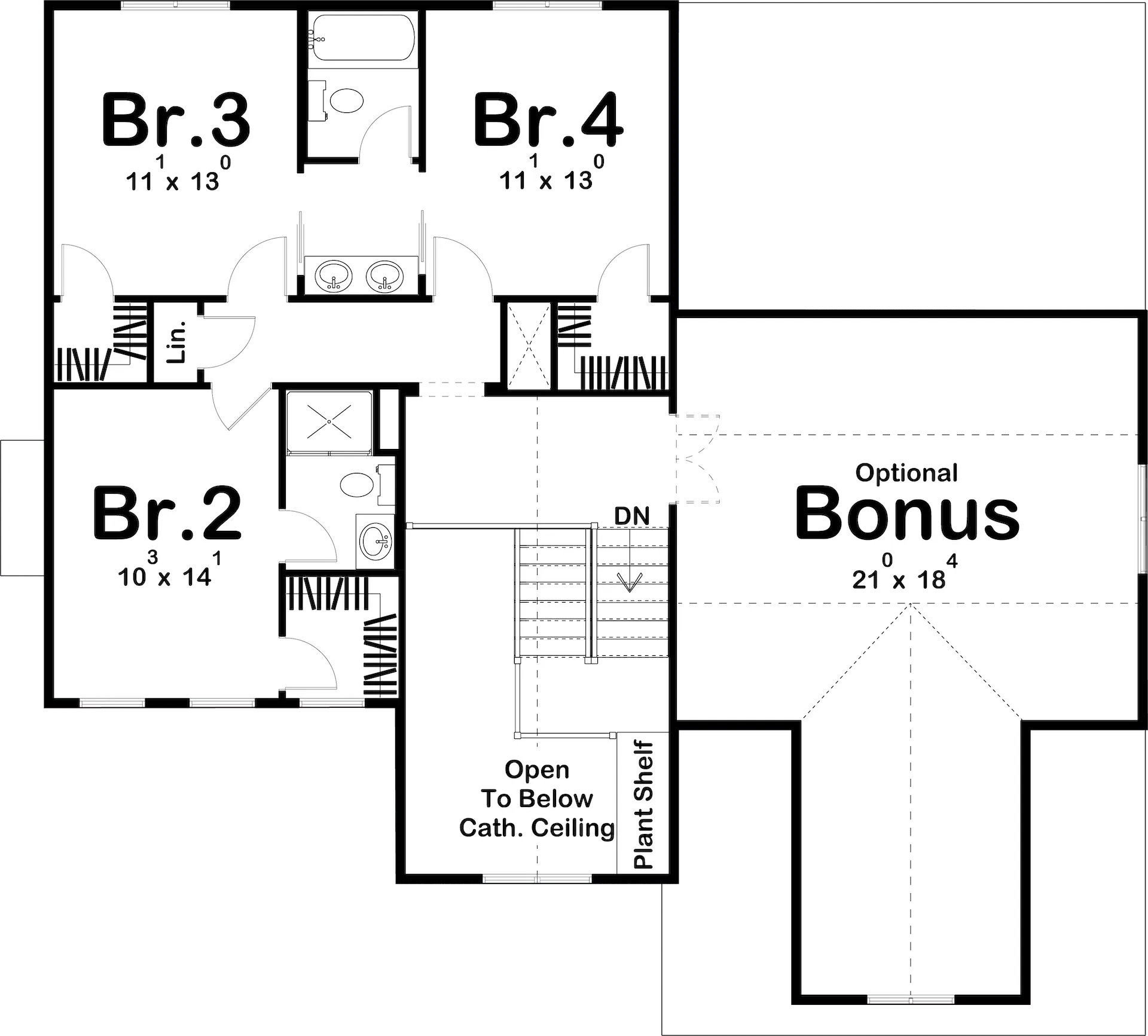 Upstairs, the home accommodates three additional bedrooms, each with its own walk-in closet. Bedroom 2 has an en-suite bath with a shower, while bedrooms 3 and 4 share a Jack-n-Jill bath. The design maximizes storage with an optional attic space, offering versatile possibilities for use. Overall, this home plan blends modern aesthetics with practical living spaces, ideal for families seeking both style and functionality.