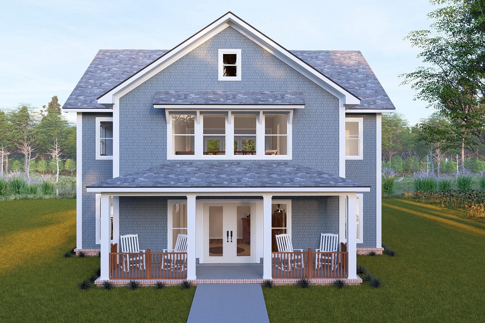 Upstairs, three additional bedrooms are joined by a versatile game room and a secondary laundry area for added ease. With 4 bedrooms, 3.5 bathrooms, a split-bedroom layout, and both front and rear covered porches, this plan provides the ideal blend of comfort and style. Its 8:12 pitch stick-framed roof and thoughtful layout make it a smart choice for growing families or multigenerational living.