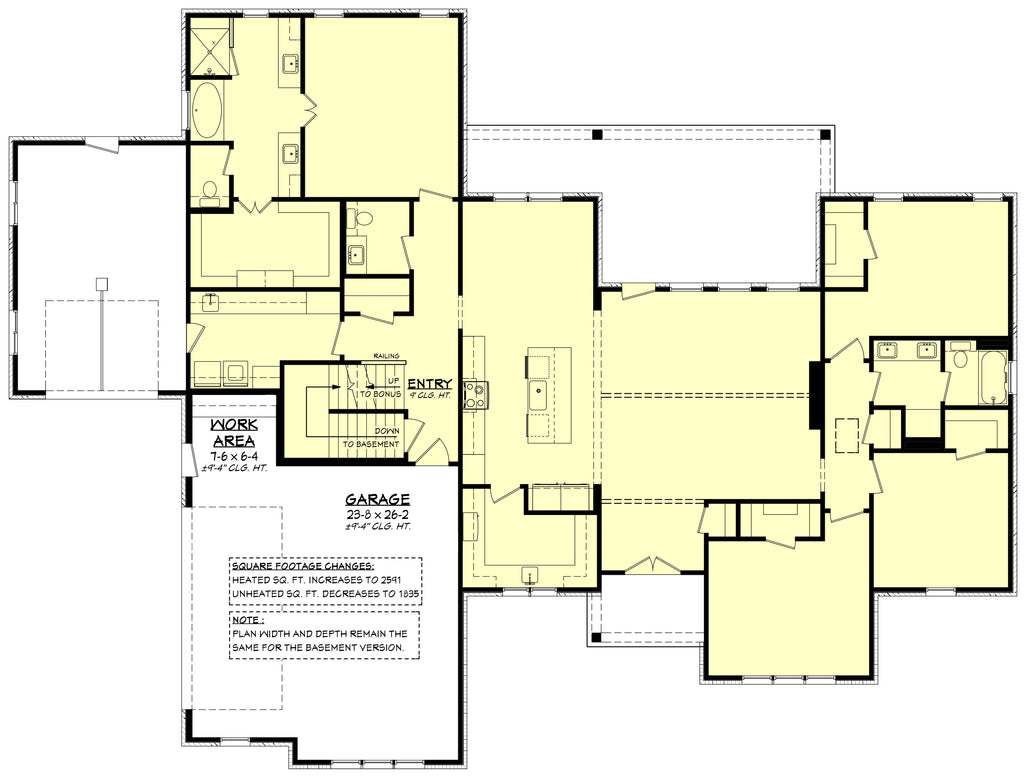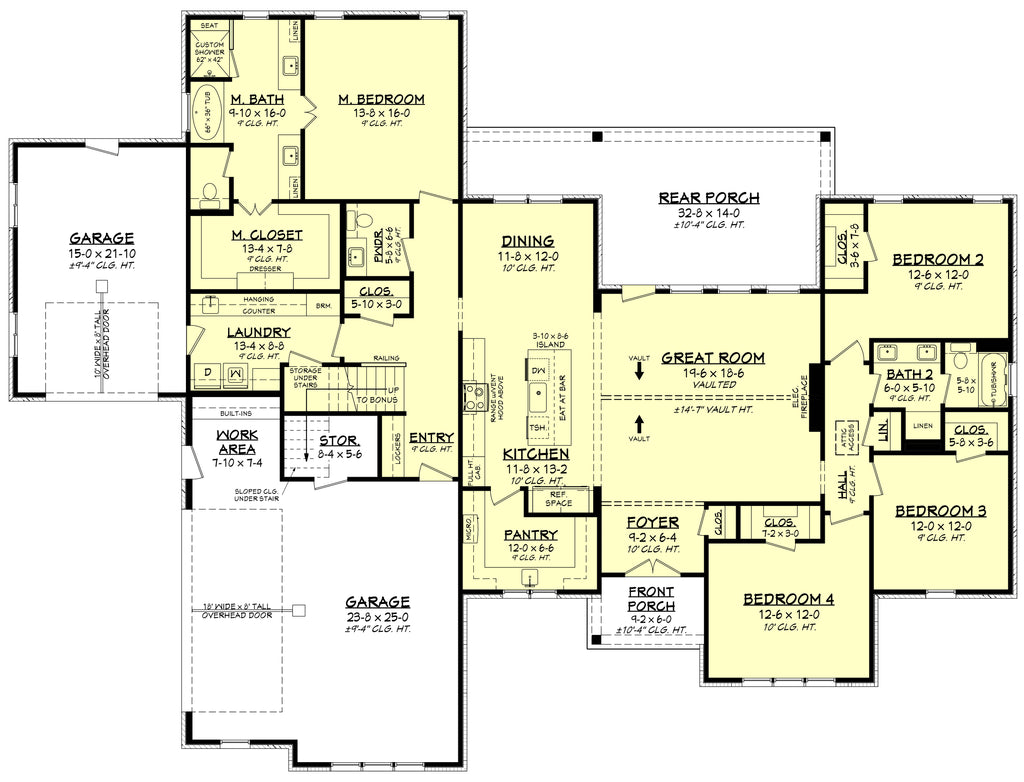 The first-floor master suite provides a peaceful retreat, complete with a luxurious bath, double vanities, and a spacious walk-in closet. Three additional bedrooms and a bonus room above the garage offer flexibility for guests, hobbies, or a home office. A 3-car garage with a workshop area and extra storage enhances the home’s practicality. With its balanced symmetry, vaulted ceilings, and classic architectural details, this traditional home plan delivers a perfect combination of elegance, comfort, and enduring appeal.