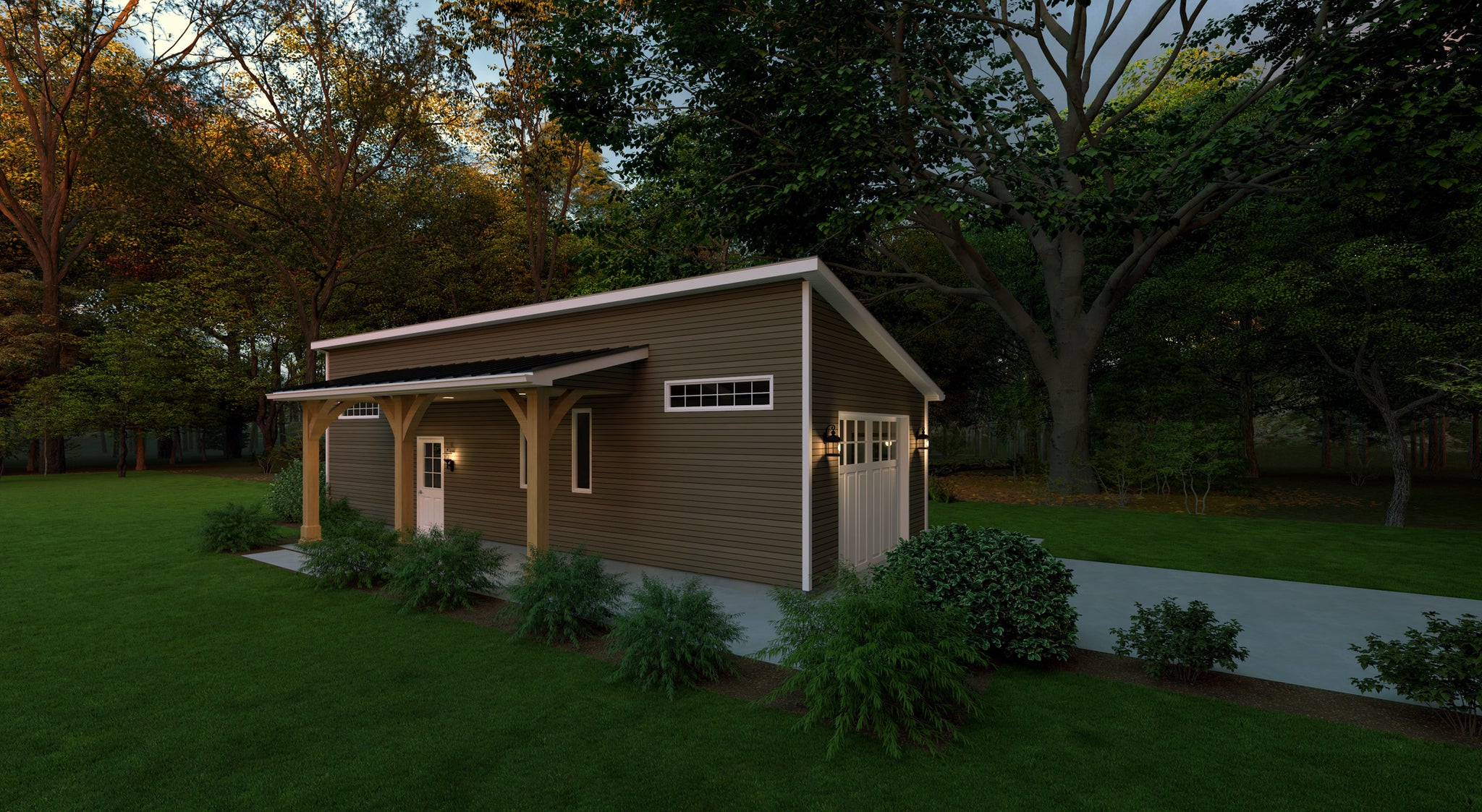 Built on a sturdy slab foundation with durable 2x4 wall framing and a 3:12 truss roof, this structure is designed for long-lasting performance. The charming 168-square-foot covered front porch adds both character and utility—ideal for relaxing, organizing outdoor gear, or adding visual appeal to your property. Whether used as a hobby shop, tool storage area, or small-scale garage, this thoughtfully designed plan delivers efficiency and style in one compact package.