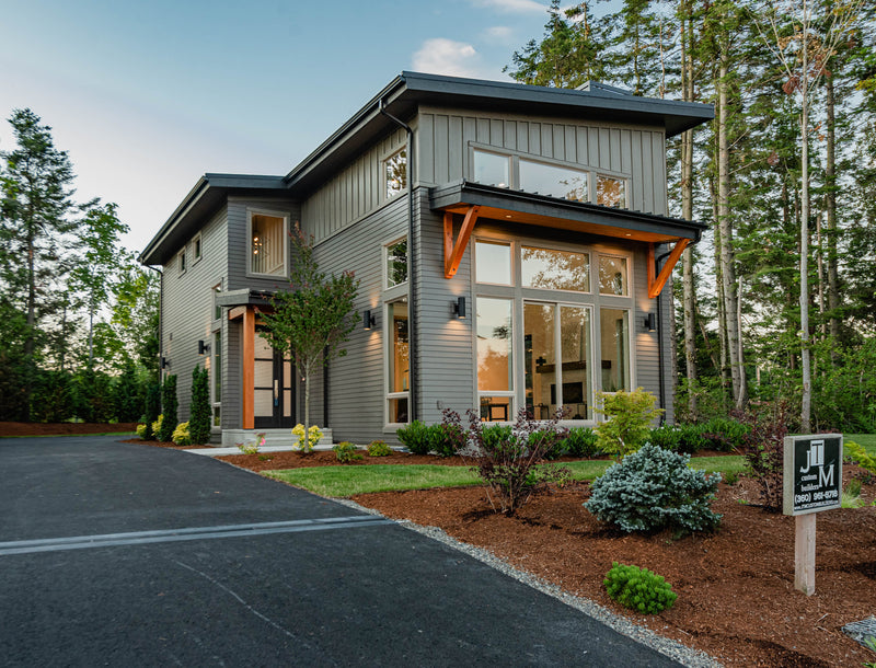 Upstairs, the 614 sq ft second floor houses two additional bedrooms and a shared bathroom, all designed with cozy 7' ceiling heights for an intimate feel. The truss-framed roof and 2x6 wall framing enhance structural durability.