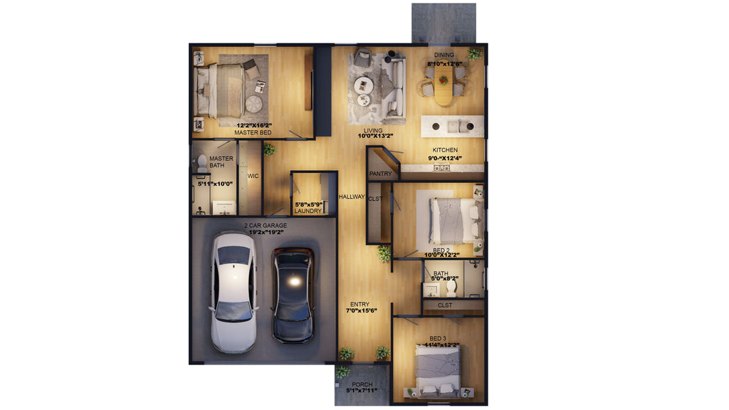 A key highlight of this home is its attached 435 sq. ft. two-car garage with a front-facing garage load, offering both convenience and curb appeal. The first-floor laundry room adds to the home’s efficiency, while the 10-foot ceilings provide an airy, spacious feel. Built on a slab foundation with 2x4 wall framing, stick-built roofing, and a 6:12 roof pitch, the home balances durability with modern design.