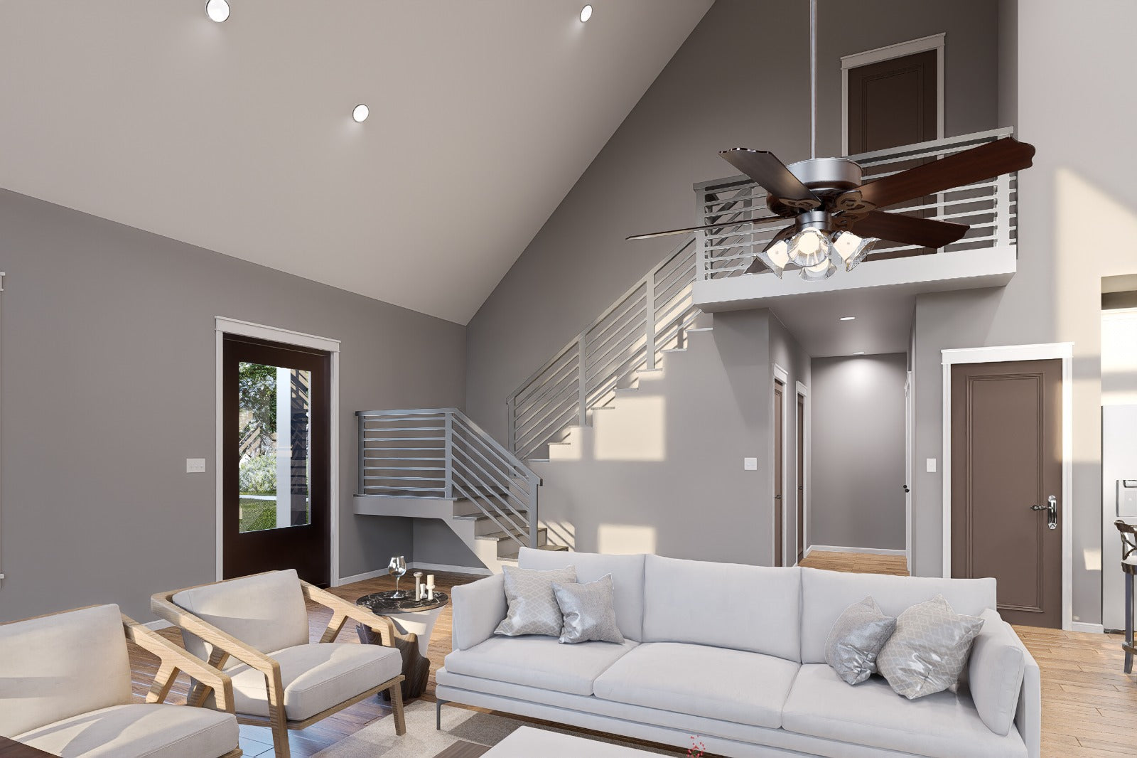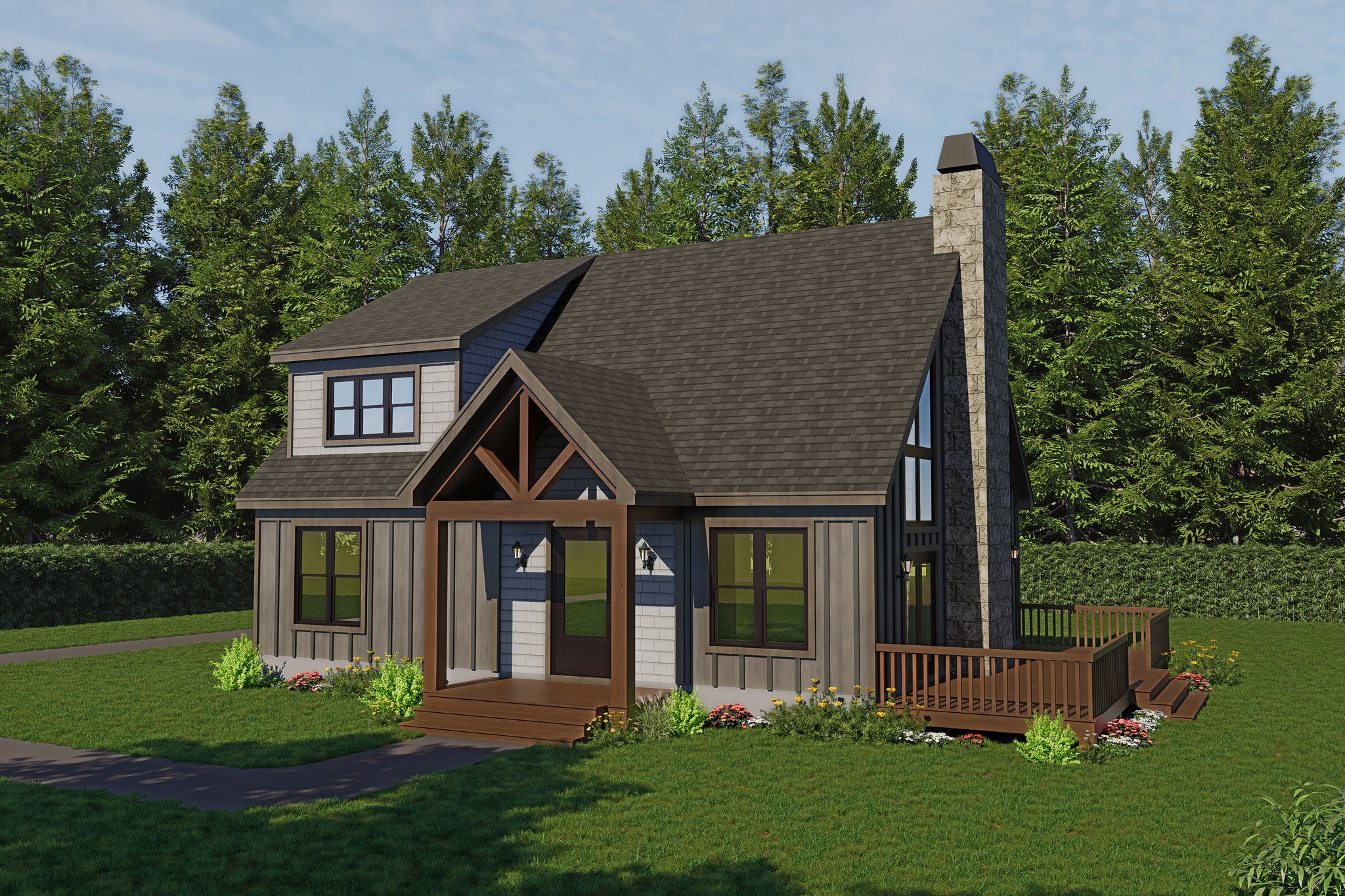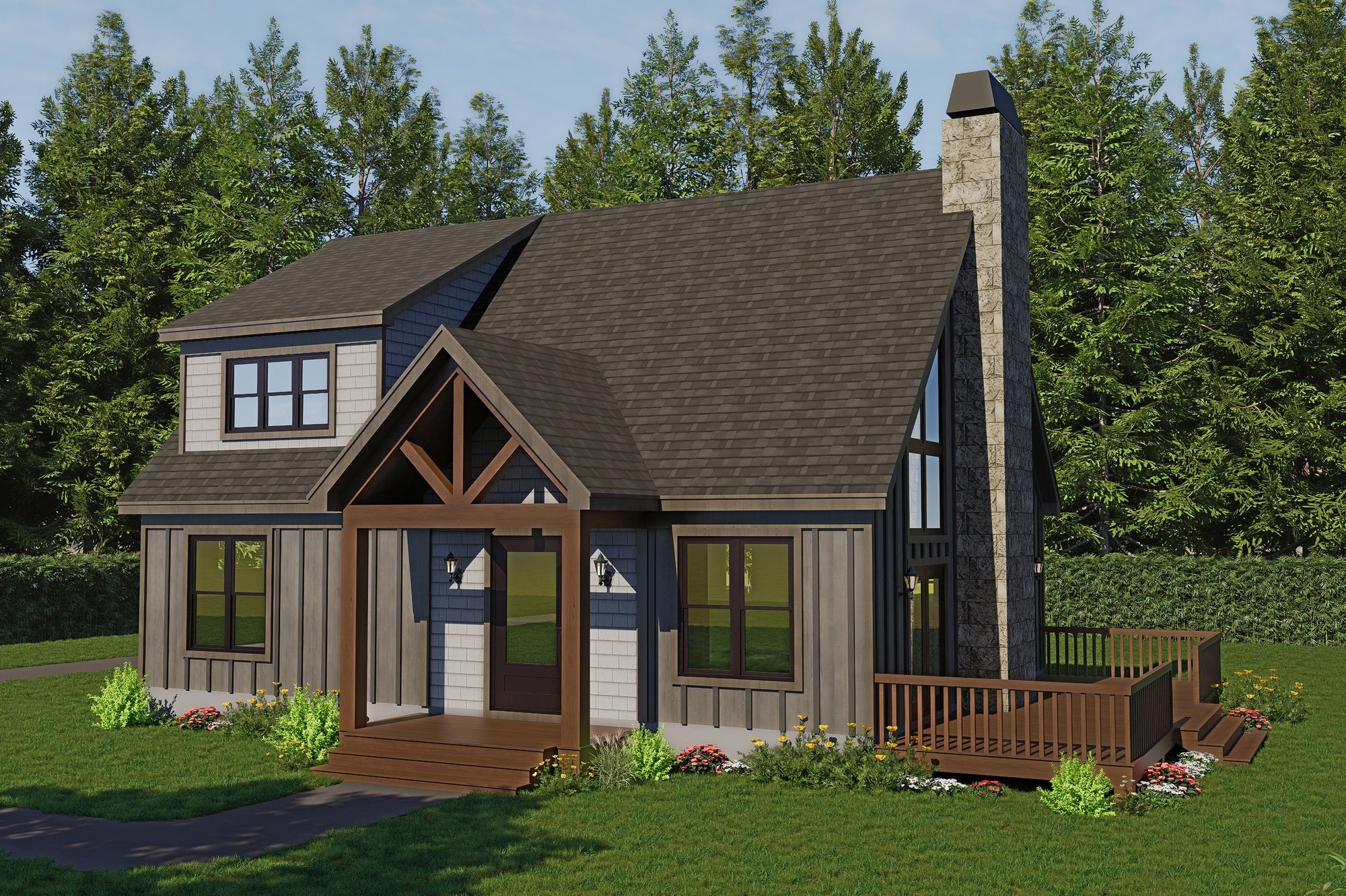 Upstairs, the 470 sq ft second floor houses a spacious master suite with a private bath and walk-in closet, along with a loft area that overlooks the grand room below—ideal for a reading nook or home office. The home’s classic stick-framed structure is topped with a steep 12:12 pitch roof, and its footprint (50' wide by 38' deep) makes it ideal for a variety of lots. With 377 sq ft of porch and deck space, this home is the perfect balance of cozy comfort and architectural presence.