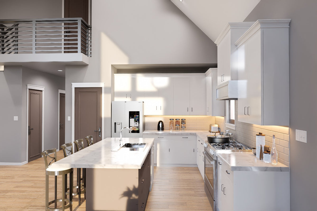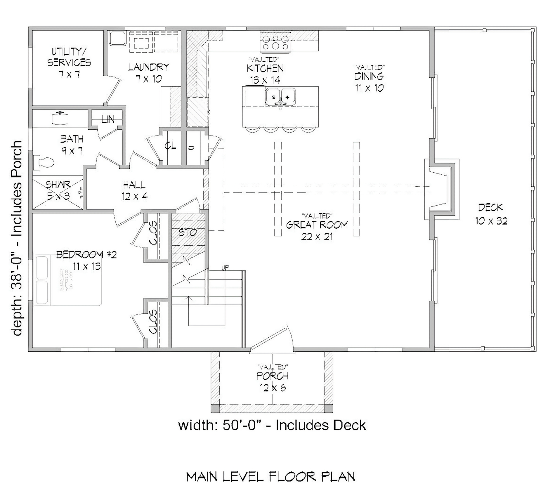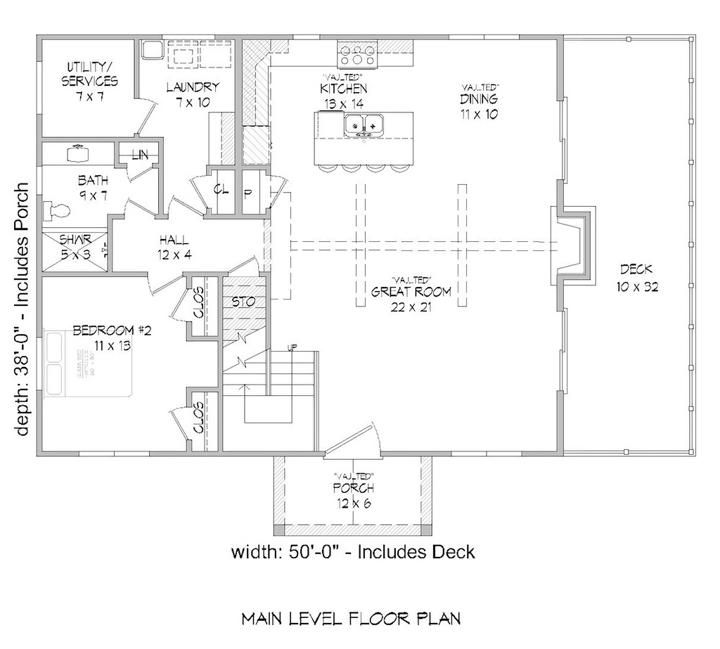 Upstairs, the 470 sq ft second floor houses a spacious master suite with a private bath and walk-in closet, along with a loft area that overlooks the grand room below—ideal for a reading nook or home office. The home’s classic stick-framed structure is topped with a steep 12:12 pitch roof, and its footprint (50' wide by 38' deep) makes it ideal for a variety of lots. With 377 sq ft of porch and deck space, this home is the perfect balance of cozy comfort and architectural presence.