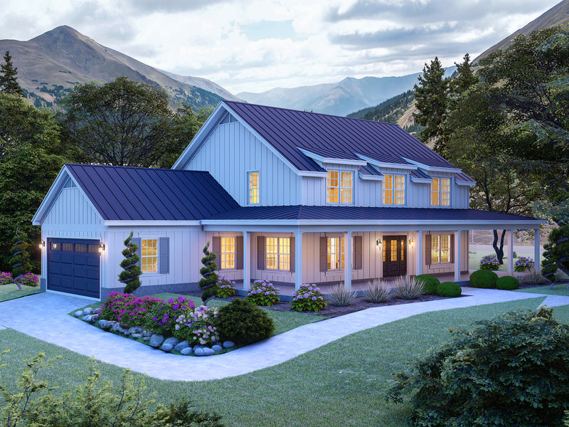 The 1,016 sq. ft. second floor includes two additional bedrooms, a full bath, a cozy family room, and generous storage space with access to a dedicated attic area. Designed on a crawl space foundation, this home features 2x4 wall framing and a roof with varied pitches of 8:12 and 2.5:12. With a 2-car side-load garage (543 sq. ft.), 653 sq. ft. of porch space, and 383 sq. ft. of storage, this residence is perfect for families seeking comfort, efficient design, and architectural character.