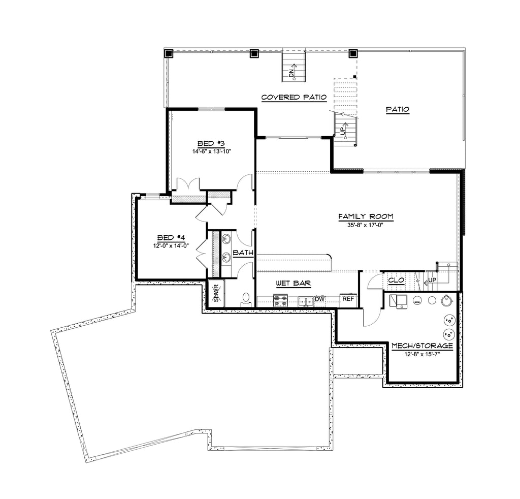 Walkout Basement - This foundation is typically suited for rear-sloping lots and provides storage or living areas. Walkout basements have doors that provide access to the outside.