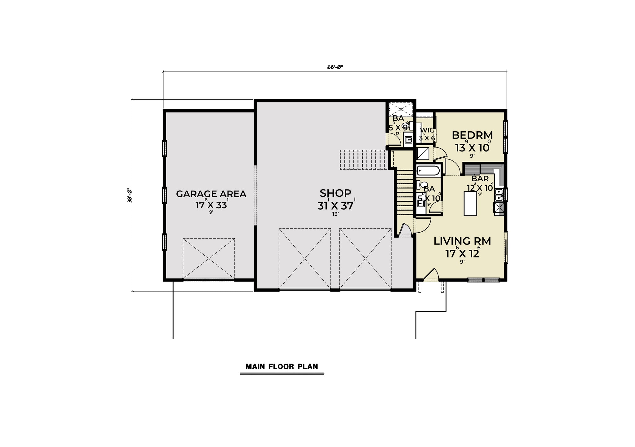 This thoughtfully designed one-bedroom, two-bathroom home offers 1,400 sq. ft. of heated living space, balancing functionality with flexibility. The 612 sq. ft. first-floor living area features a well-equipped kitchen with a central island, a spacious living room, and a walk-in closet for added convenience. With 9-foot ceilings, the home feels open and inviting, while ample storage ensures organization and efficiency.