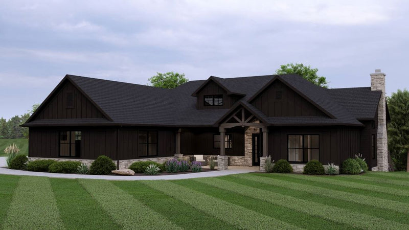 Welcome to this thoughtfully designed house plan, which offers 1,881 square feet of living space on the main floor, with an additional 1,893 square feet in the walkout basement, making it a versatile choice for various needs. The home features two bedrooms and two bathrooms, centered around an open-concept great room with a cozy fireplace and access to the covered back porch, perfect for relaxing or entertaining.