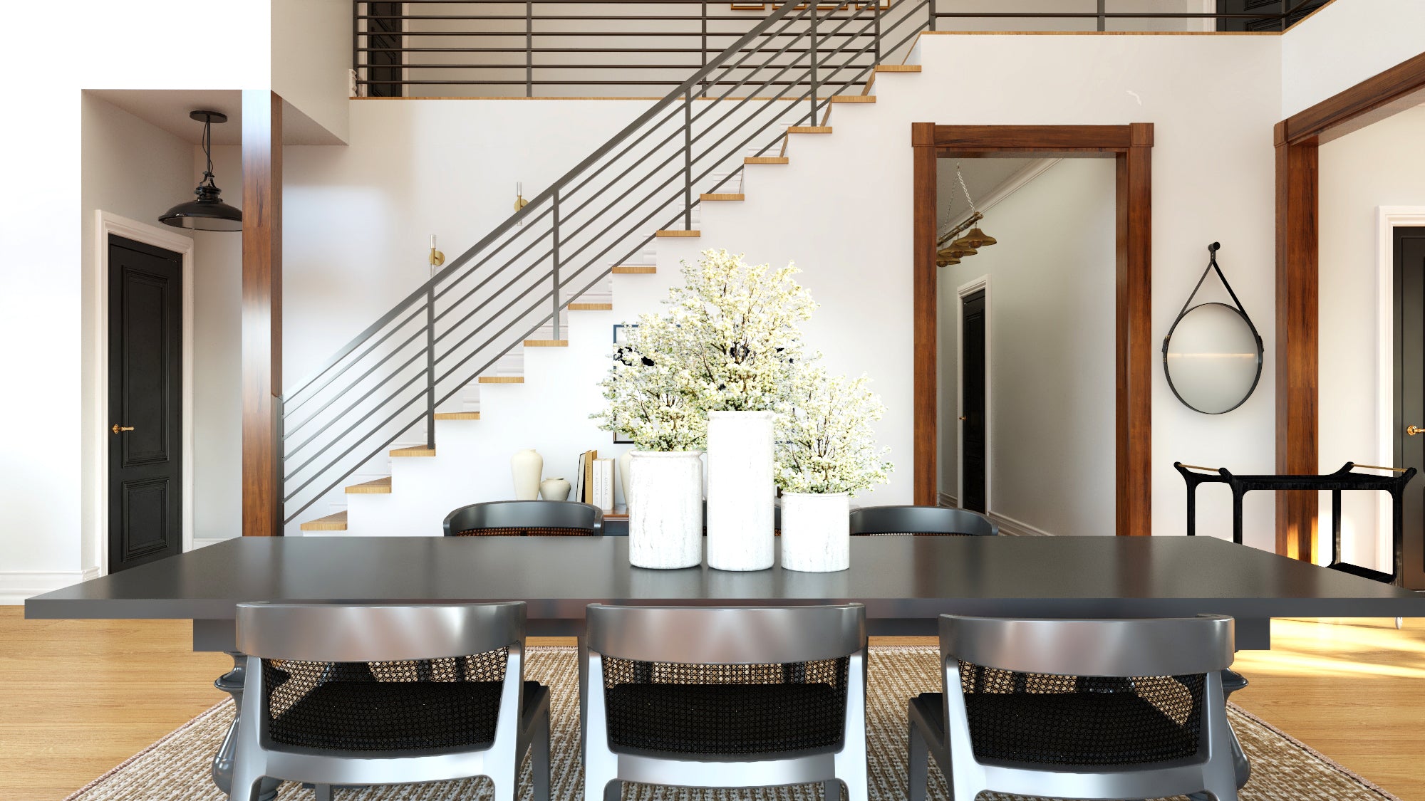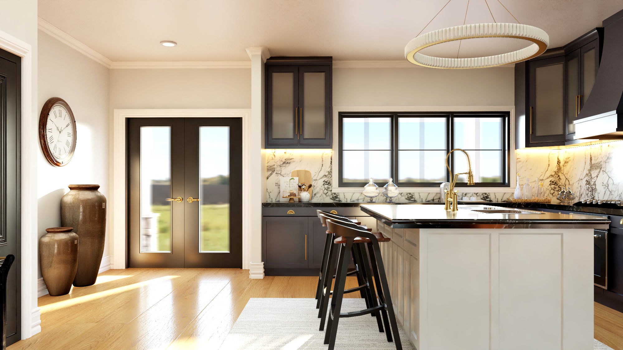 Upstairs, three additional bedrooms and bathrooms provide ample space for family or guests, while a dedicated den offers the perfect spot for a home office or reading nook. The massive 3,009 sq ft front-load garage includes room for three vehicles plus a workshop—ideal for hobbyists, gearheads, or those needing extra storage. With 9' ceilings on both the main floor and basement, and 8' ceilings upstairs, this home offers open, airy spaces on every level.