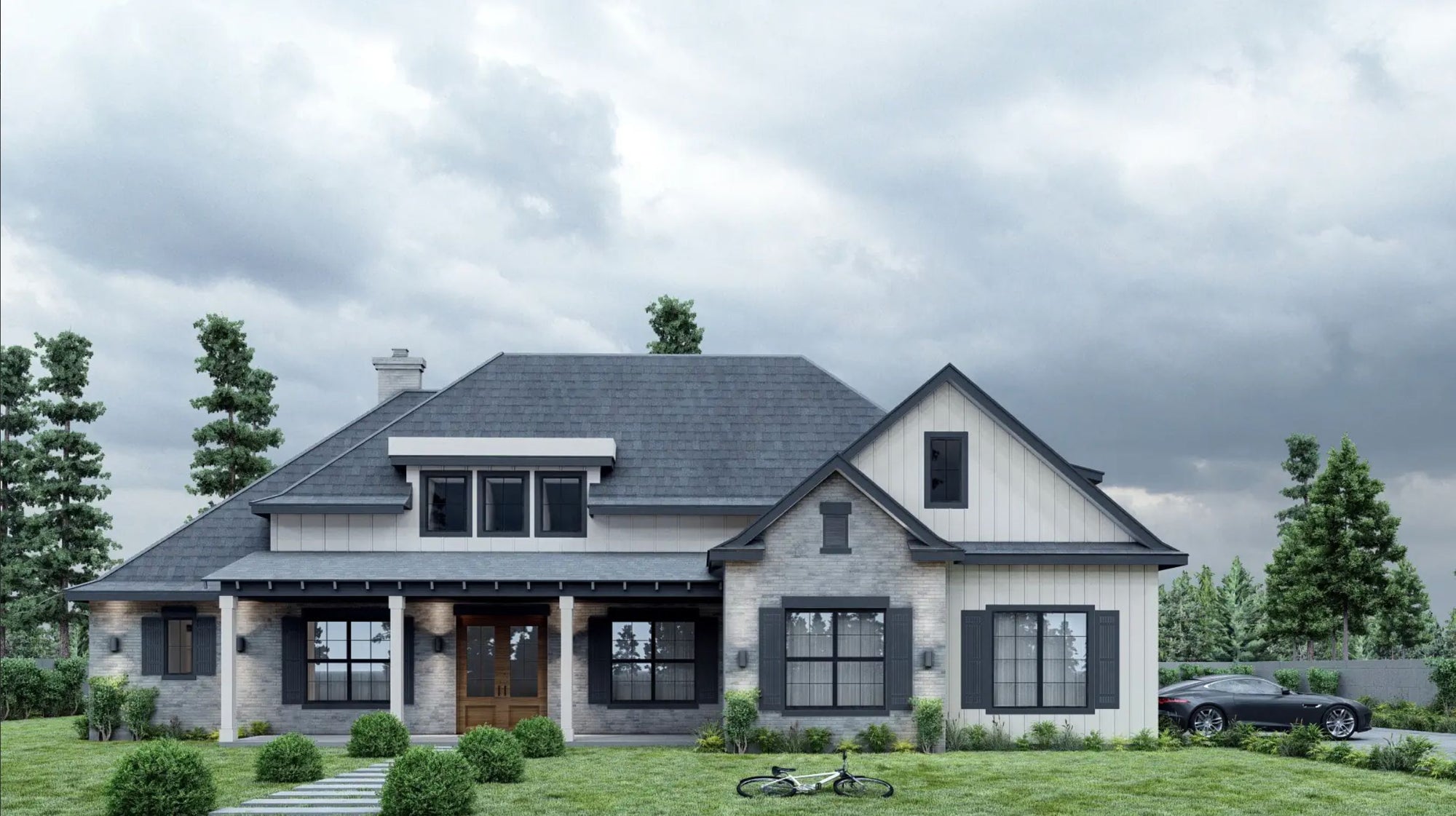 Built on a slab foundation with a stone exterior, 2x4 wall framing, and a 10:12 roof pitch, this home is both stunning and durable. Measuring 79'10" wide by 64'5" deep and standing 28'6" tall, this thoughtfully designed home blends luxury, practicality, and timeless curb appeal, making it the perfect choice for a forever home.