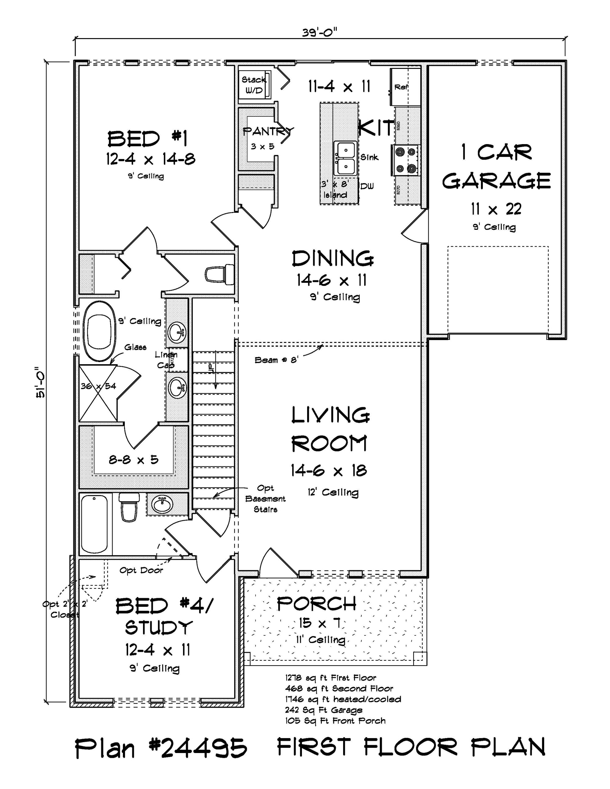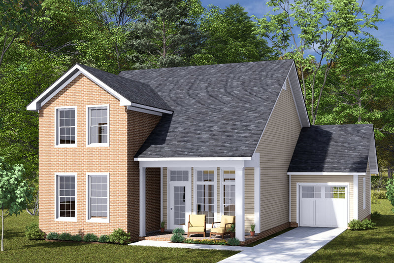 This well-designed 1,746 sq ft home features a functional and efficient layout with 4 bedrooms and 3 bathrooms. The open-concept first floor includes a spacious living area, a kitchen with a convenient island and walk-in pantry, and a master suite with ample closet space. The first floor has two bedrooms with one room as an option for a home office/study. The second floor provides additional living space with 468 sq ft, locates another two bedrooms with 8' ceiling height. A covered 105 sq ft front porch adds curb appeal and space for outdoor relaxation. The 242 sq ft garage offers room for 1 vehicle with a front-loading design. Built on a slab foundation with 2x4 wall framing, truss roof framing, and an 8:12 roof pitch, this home offers both style and functionality.
