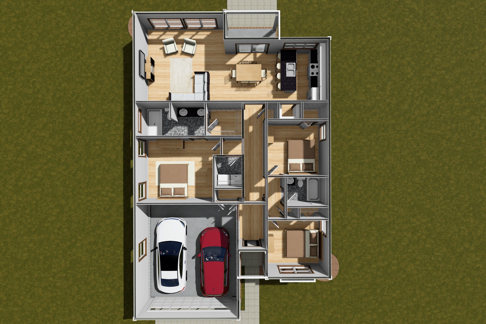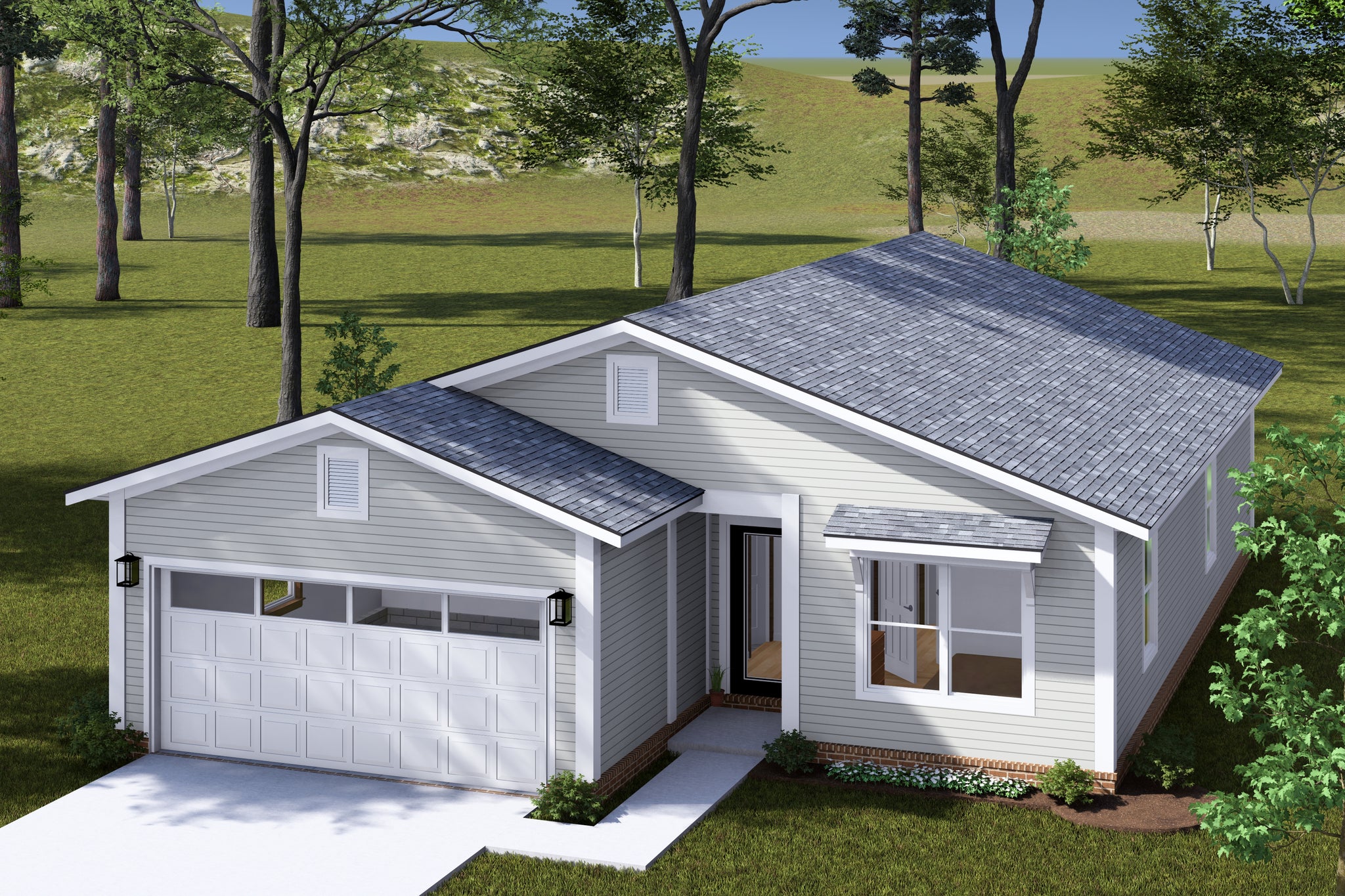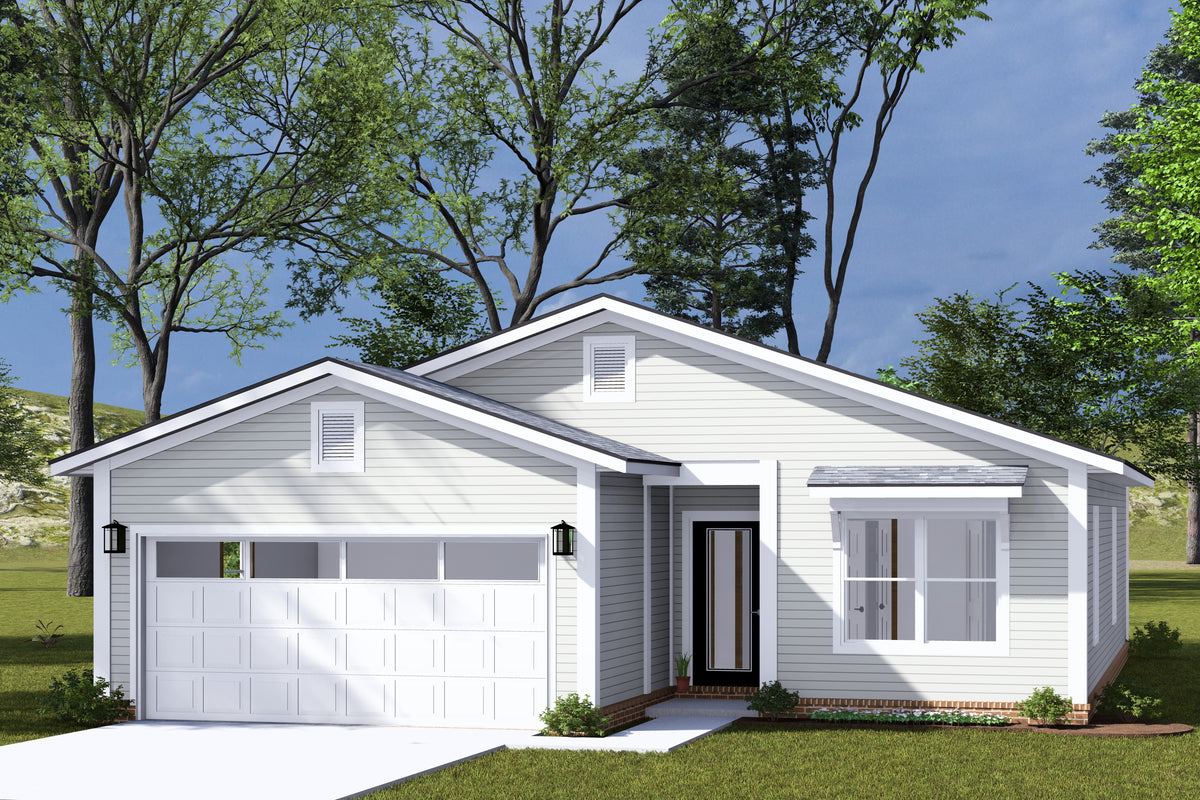 The home features a desirable split-bedroom layout, with the master suite tucked away for added privacy. The master includes a full bath and ample closet space, while two additional bedrooms on the opposite side of the house share a second full bath. A front-loading two-car garage, first-floor laundry room, and efficient slab foundation enhance the home's functionality. With its clean lines, open flow, and practical features, this home combines simplicity with modern style for easy living.
