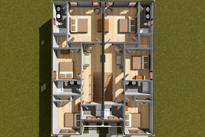 Designed for versatility and space optimization, this 3,624 sq ft duplex offers two identical units—each with 1,812 sq ft of living space across two floors. Perfect for multi-generational living, investment opportunities, or rental income, each side features 4 spacious bedrooms, 3 full bathrooms, and a half bath, providing comfort and convenience for any household setup.