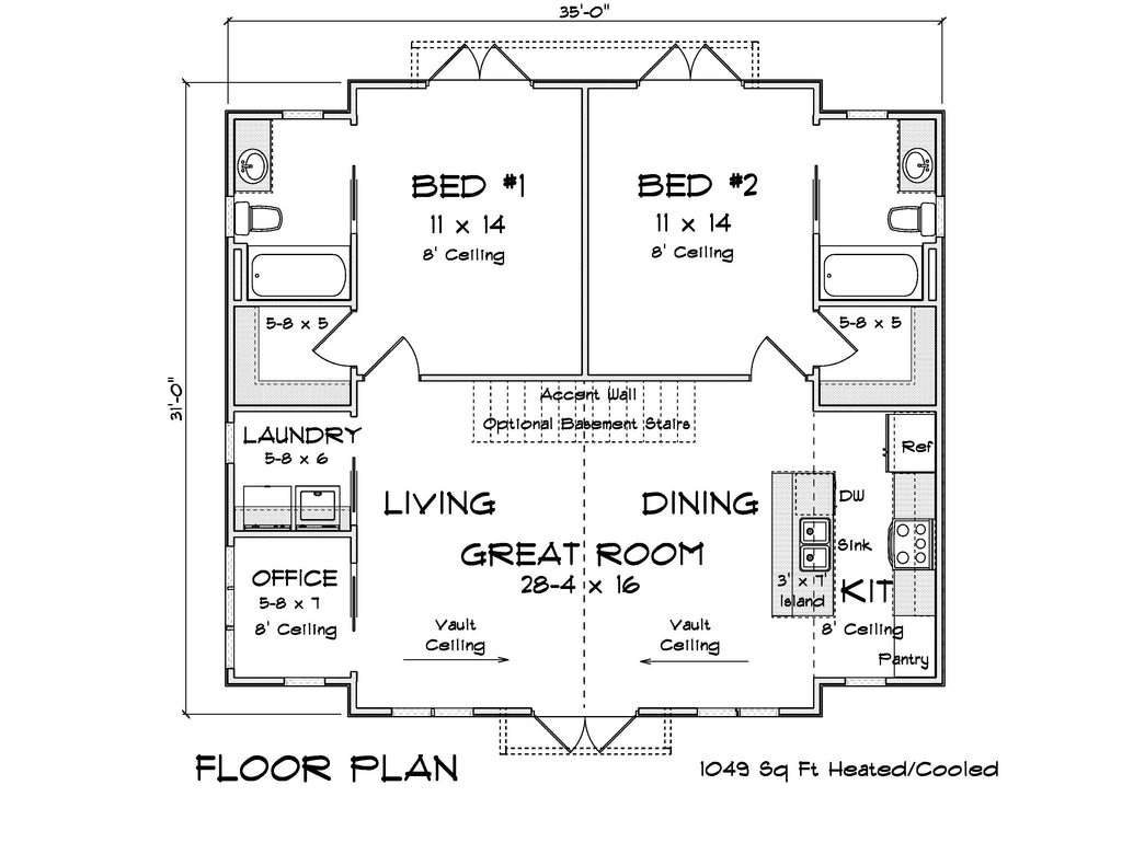 Designed for convenience and flexibility, this plan includes two master suites, each featuring a private bath and walk-in closet — perfect for shared living, guests, or multigenerational families. The first-floor laundry and efficient 2x4 framing add practicality, while the stick and truss roof framing with an 8:12 roof pitch gives the home timeless cottage character. With its cozy charm and thoughtful layout, this home is an ideal blend of modern comfort and classic simplicity.