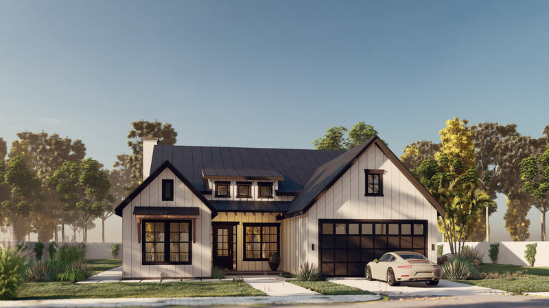 The 581 sq. ft. three-car garage with a front-load entry provides plenty of space for vehicles and storage. Built on a slab foundation with 2x4 wall framing, stick-built roofing, and a combination of 6:12 and 12:12 roof pitches, this home is both stylish and durable. Measuring 45'10" wide by 87'8" deep and standing 29 feet tall, this thoughtfully designed home blends luxury, practicality, and timeless charm, making it a perfect choice for a forever home.