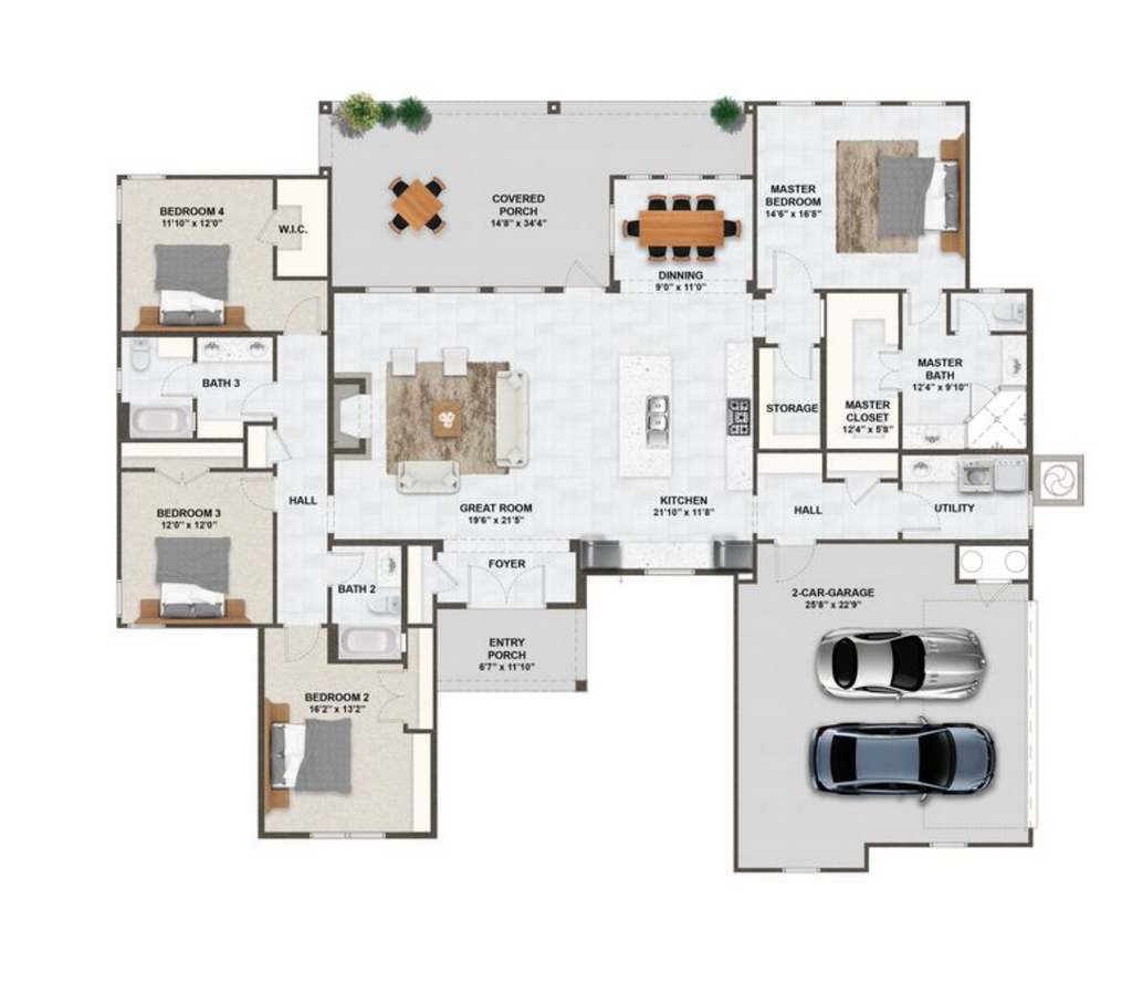 This 2,479 sq. ft. one-story home offers a well-designed layout that blends comfort, functionality, and elegance. Featuring three bedrooms and four bathrooms, this home provides ample space for families and guests. The split-bedroom layout ensures privacy, with the first-floor master suite featuring a walk-in closet and a luxurious en-suite bath with a double vanity sink. The keeping/family room serves as the central gathering space, complete with a fireplace, while the kitchen island and walk-in pantry add convenience and style.