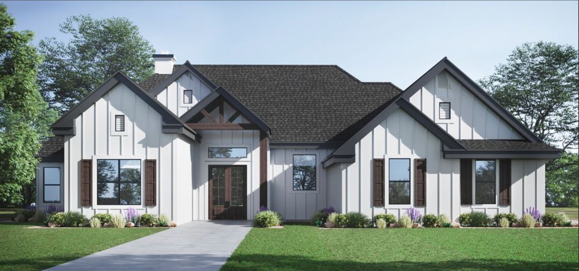 The 581 sq. ft. two-car garage with a side-load entry offers plenty of space for vehicles and storage. Built on a slab foundation with 2x4 wall framing, truss roof framing, and a 12:10 roof pitch, this home is both sturdy and stylish. Measuring 72'6" wide by 61'0" deep, this thoughtfully designed home delivers modern comfort, timeless charm, and practical living for any homeowner.
