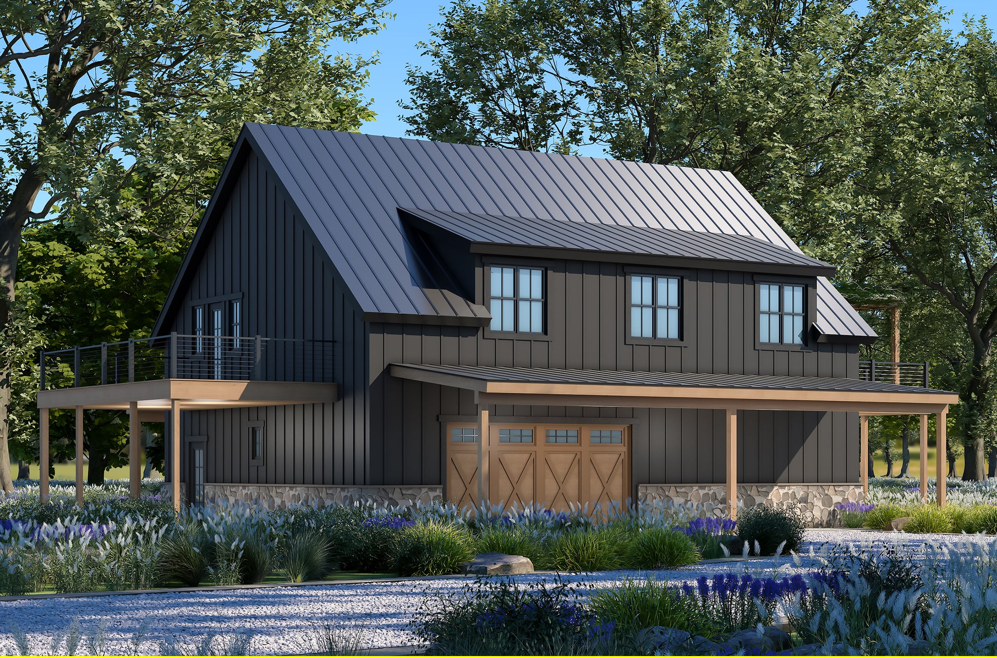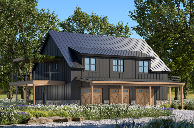 This unique garage apartment plan offers 1,622 sq. ft. of heated living space, thoughtfully arranged on the second floor above a generous 1,467 sq. ft. 3-car garage. The compact 69' by 59' footprint makes it a great option for a narrow or urban lot. With 1 bedroom, 2 full bathrooms, and a second-floor master suite, this layout balances privacy and functionality.