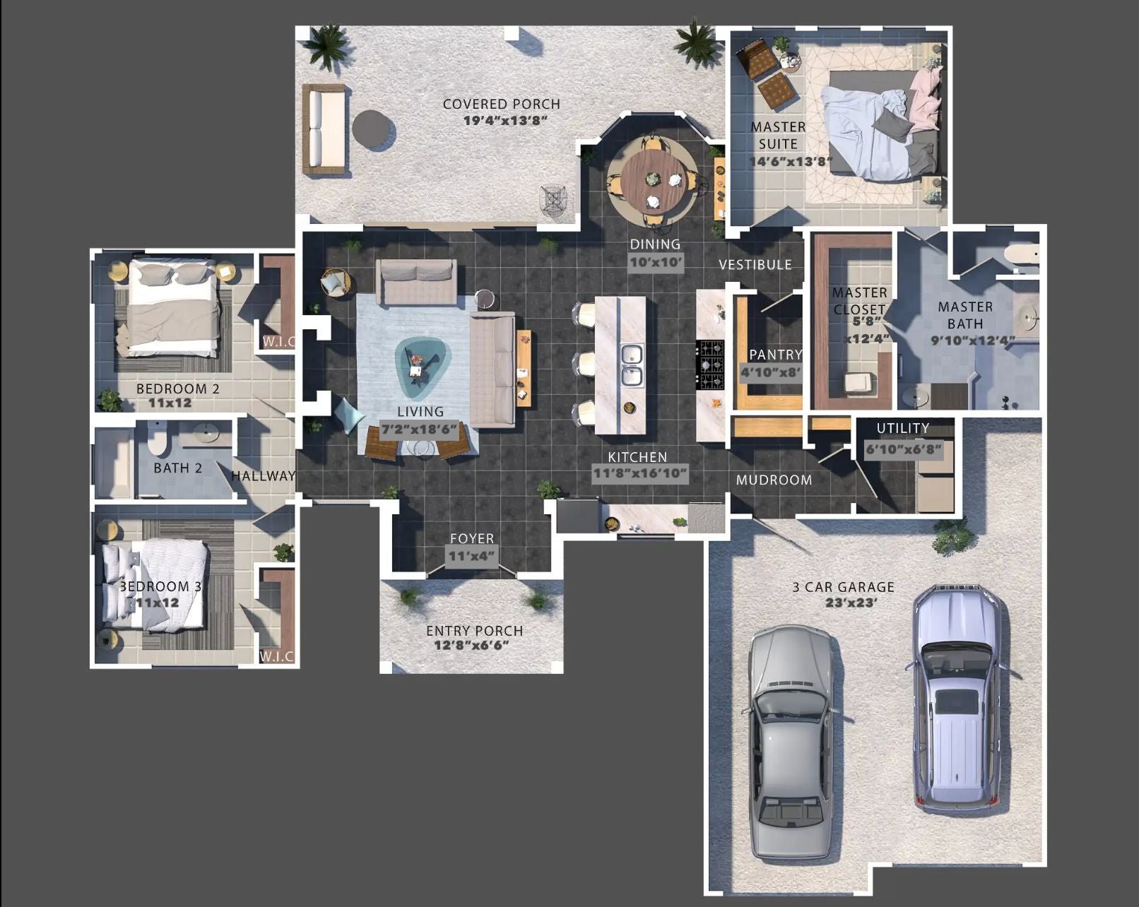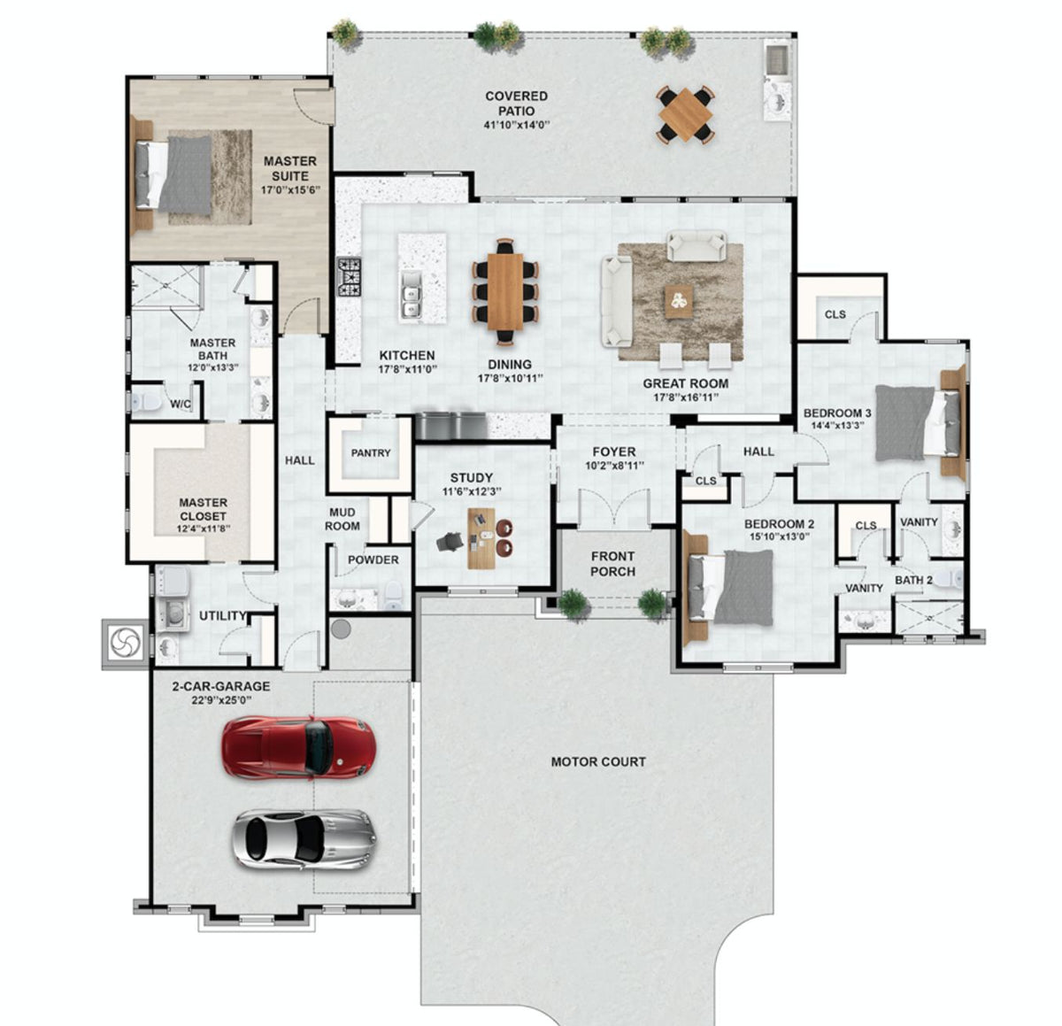 Contemporary Style 2,641 Sq. Ft. Home with Courtyard Garage & Great Room