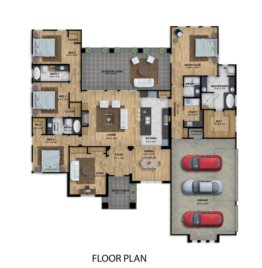 This thoughtfully designed 2,680 sq ft home offers a functional single-story layout with a perfect balance of comfort and style. The open-concept design features a spacious keeping/family room that flows seamlessly into the kitchen and dining area, creating an inviting atmosphere for gatherings. The master suite is a true retreat with a luxurious bath and walk-in closet, while a Jack and Jill bathroom conveniently connects two additional bedrooms. A dedicated home office/study provides a quiet workspace, and the mudroom and first-floor laundry add everyday convenience.