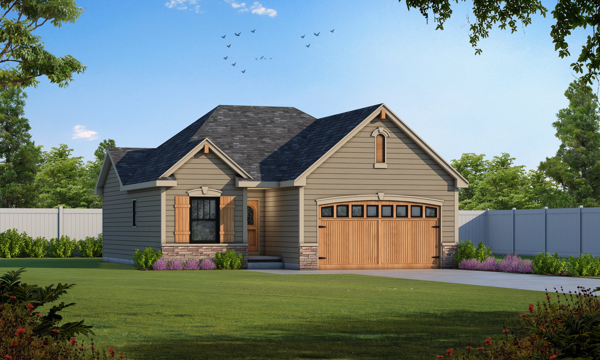 This thoughtfully designed 1,136 sq. ft. home offers the perfect blend of comfort, efficiency, and flexibility, all on one level. The exterior charms with classic lines and a welcoming front façade, while the interior features a spacious open layout ideal for relaxed living and entertaining. A cozy fireplace adds warmth to the central living space, complemented by a kitchen with a center island and generous walk-in pantry.