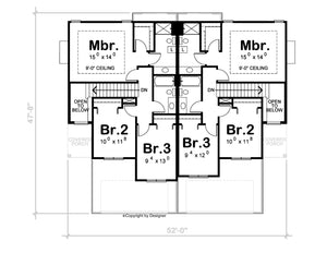 With a compact 52' overall width and 47'8" depth, this duplex fits well on narrow lots while still delivering the kind of thoughtful layout and detail—like upstairs laundry, second-floor master suites, and kitchen islands—you’ve prioritized in your other designs.