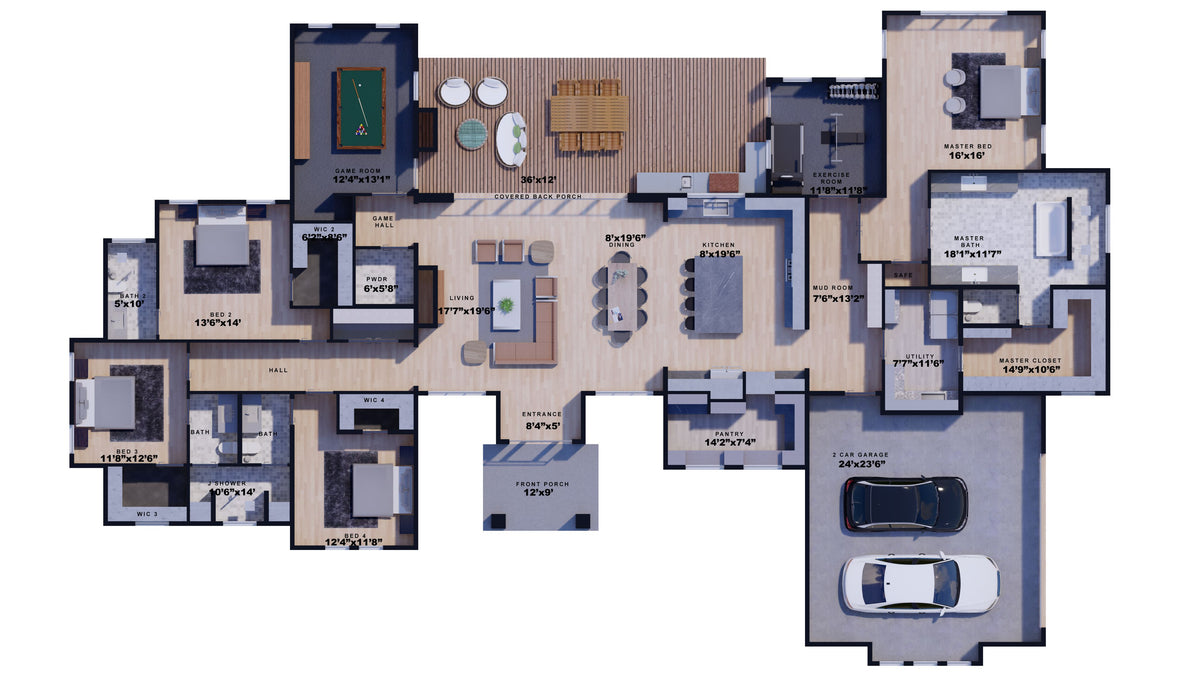 This 3,567 sq. ft. single-story home offers a perfect balance of comfort and elegance, featuring four spacious bedrooms and three and a half bathrooms in a thoughtful split-bedroom layout. The first-floor master suite provides a private retreat, while a Jack and Jill bathroom connects two additional bedrooms for convenience. A home office/study and a game room add flexibility for work and leisure.