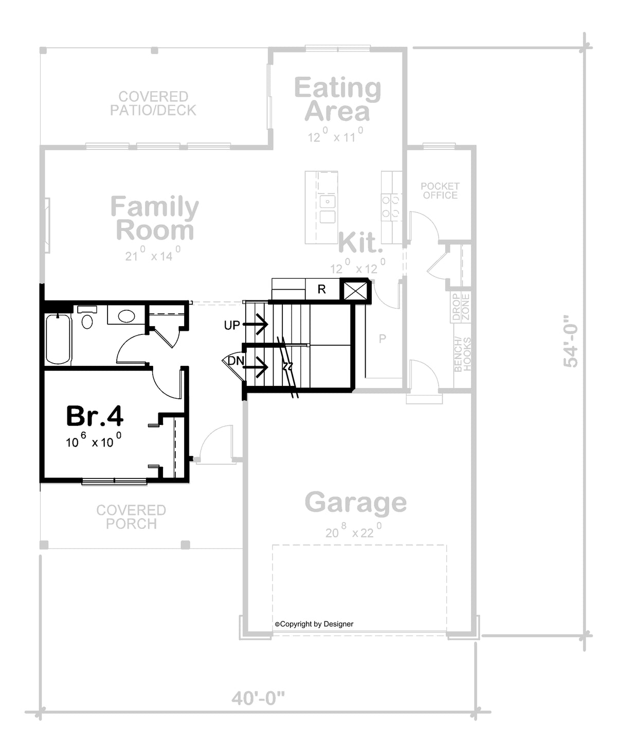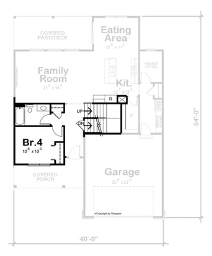 Upstairs, you'll find three well-proportioned bedrooms thoughtfully clustered for privacy, including a second-floor master suite with a private bath. A centrally located laundry room adds daily convenience, and the 9-foot ceilings on this level provide a continued sense of space. Built on a slab foundation with 2x4 wall framing, this plan balances efficiency with livability. At just 40' wide by 54' deep, it fits comfortably on modest lots while offering a flexible layout that can adapt to your lifestyle needs.