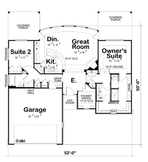 The home also boasts excellent outdoor living with a spacious 330 sq ft covered rear porch, perfect for relaxing or entertaining. Built on a slab foundation with 2x4 wall framing, the home’s 9-foot ceilings and 52’ x 50’ footprint create a roomy yet manageable space. The 2-car front-load garage and compact layout make this design an ideal choice for downsizers, small families, or anyone seeking low-maintenance living with premium amenities.