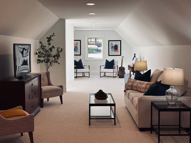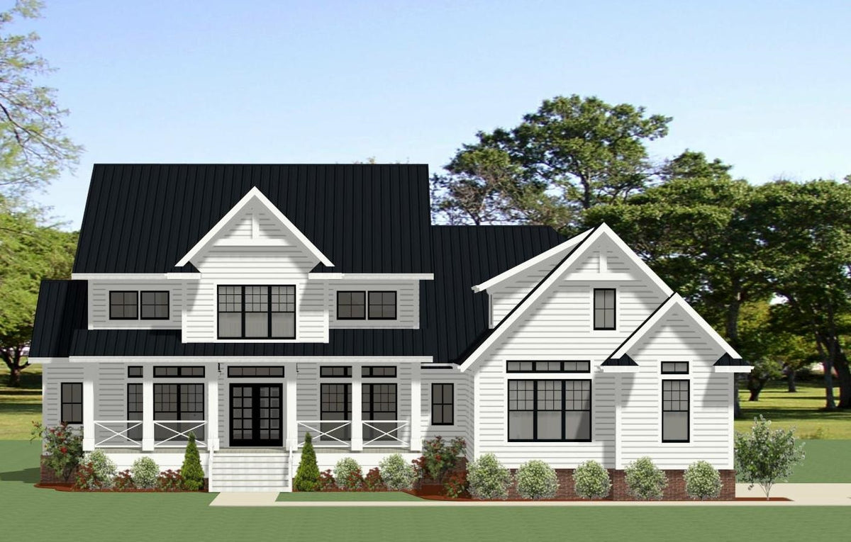 The second floor includes additional bedrooms, a loft area, and an 800 sq. ft. bonus room, ideal for a playroom, media room, or home gym. Outdoor living is enhanced with covered front and rear porches, as well as a spacious deck for entertaining. The side-load two-car garage offers ample storage, while 2x6 wall framing and a 12:12 roof pitch ensure durability and lasting appeal. This thoughtfully designed home provides both comfort and sophistication for modern living.