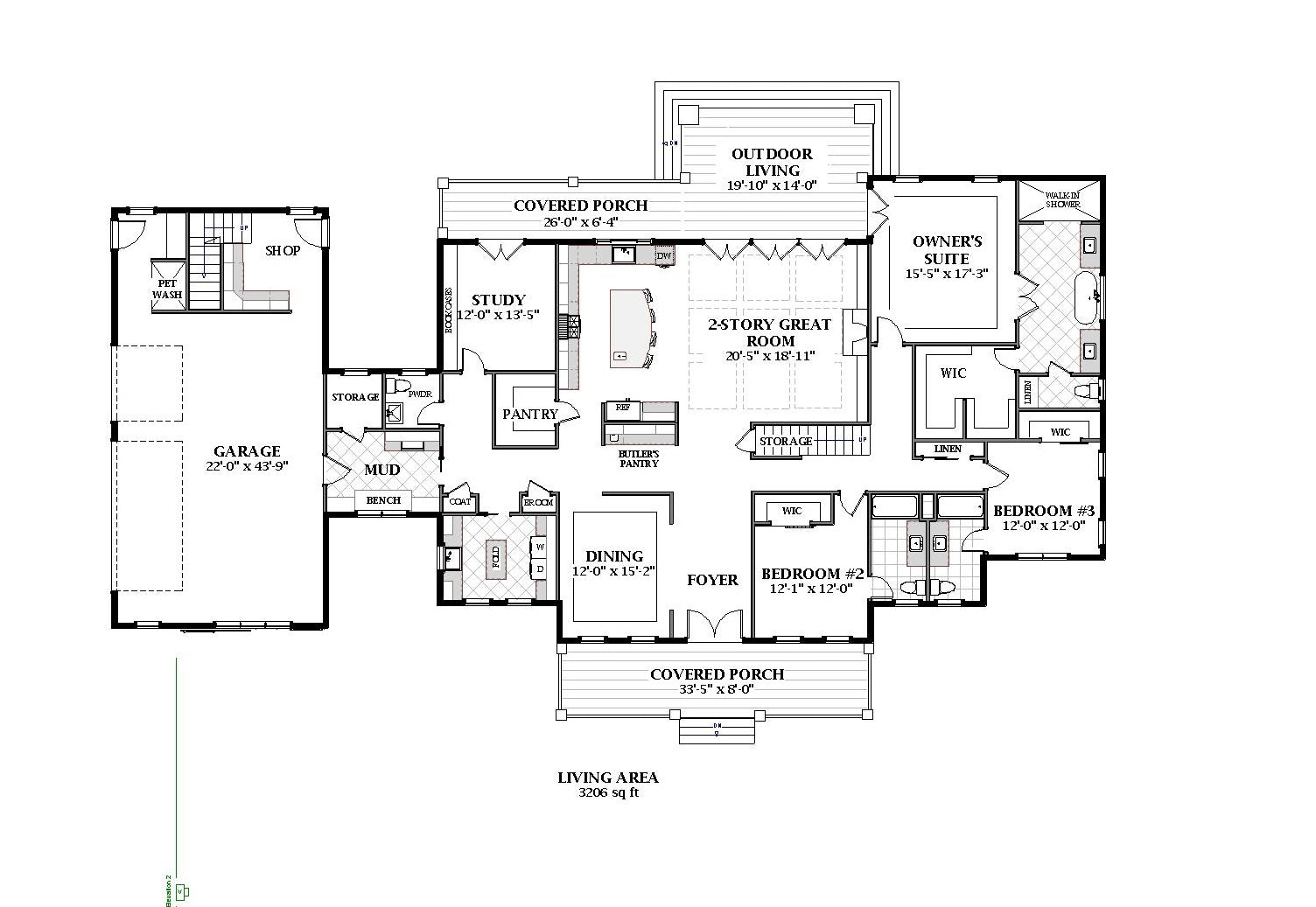 1st Floor:  3206 sq ft