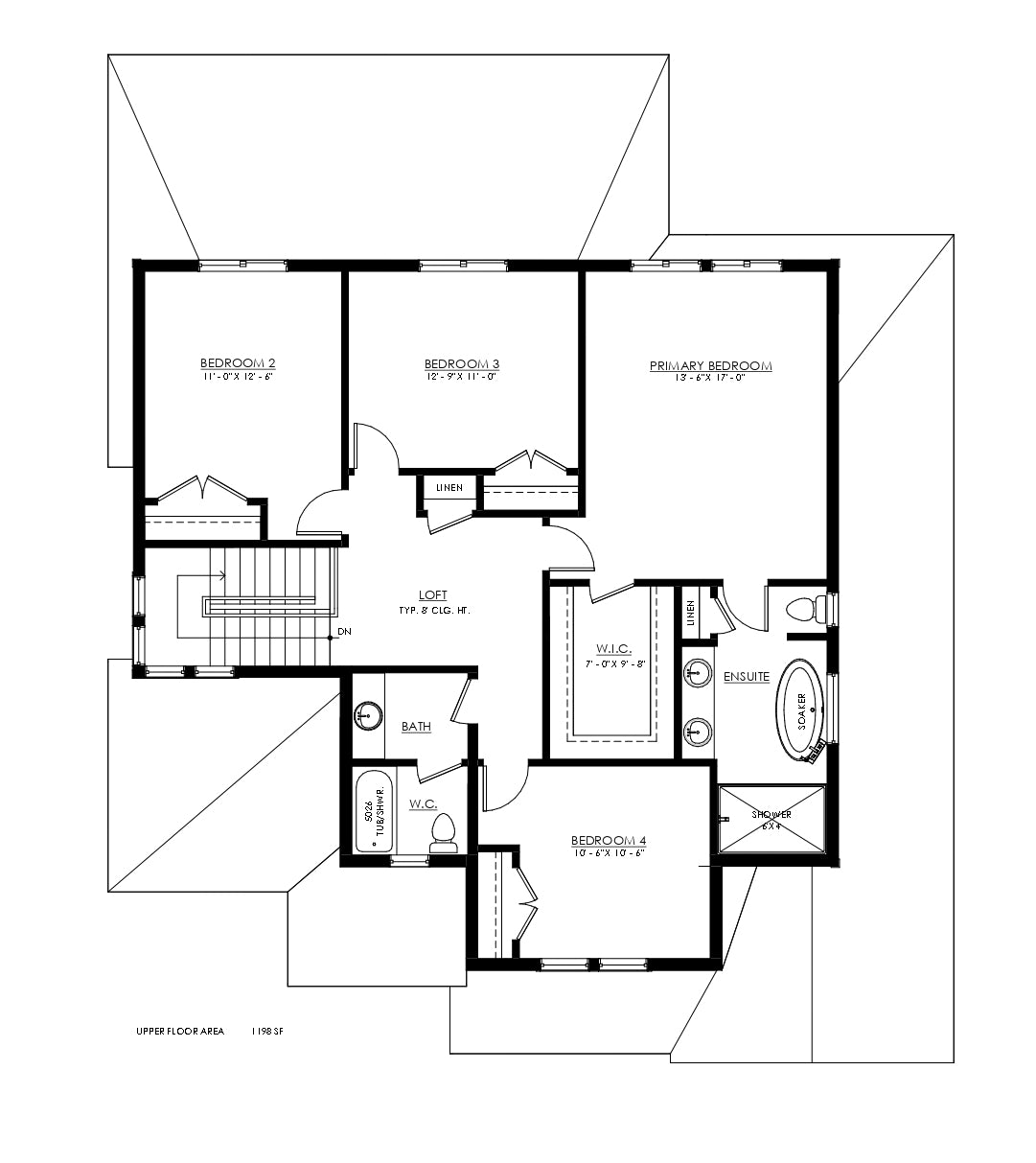 Upstairs, the second floor (1,198 sq. ft.) includes three additional bedrooms in a cluster, with a shared bathroom. A loft area provides extra space for relaxation or play, while the 8-foot ceilings help keep the space feeling open.
