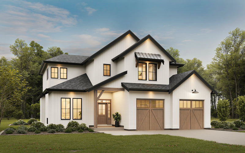 A 517 sq. ft. garage offers ample storage and parking. A 282 sq. ft. deck and 78 sq. ft. rear porch provide outdoor spaces for relaxation. The home’s 9:12 and 5:12 roof pitch completes the stylish and functional design.