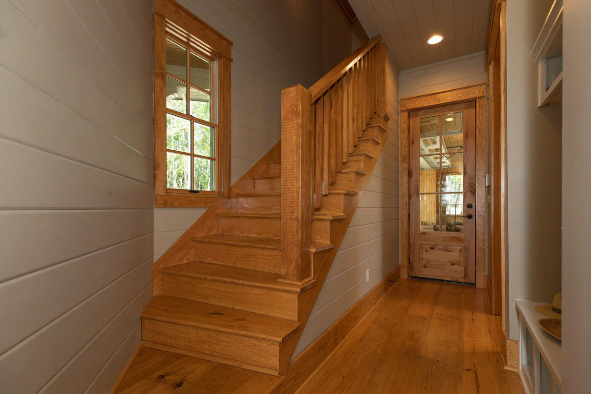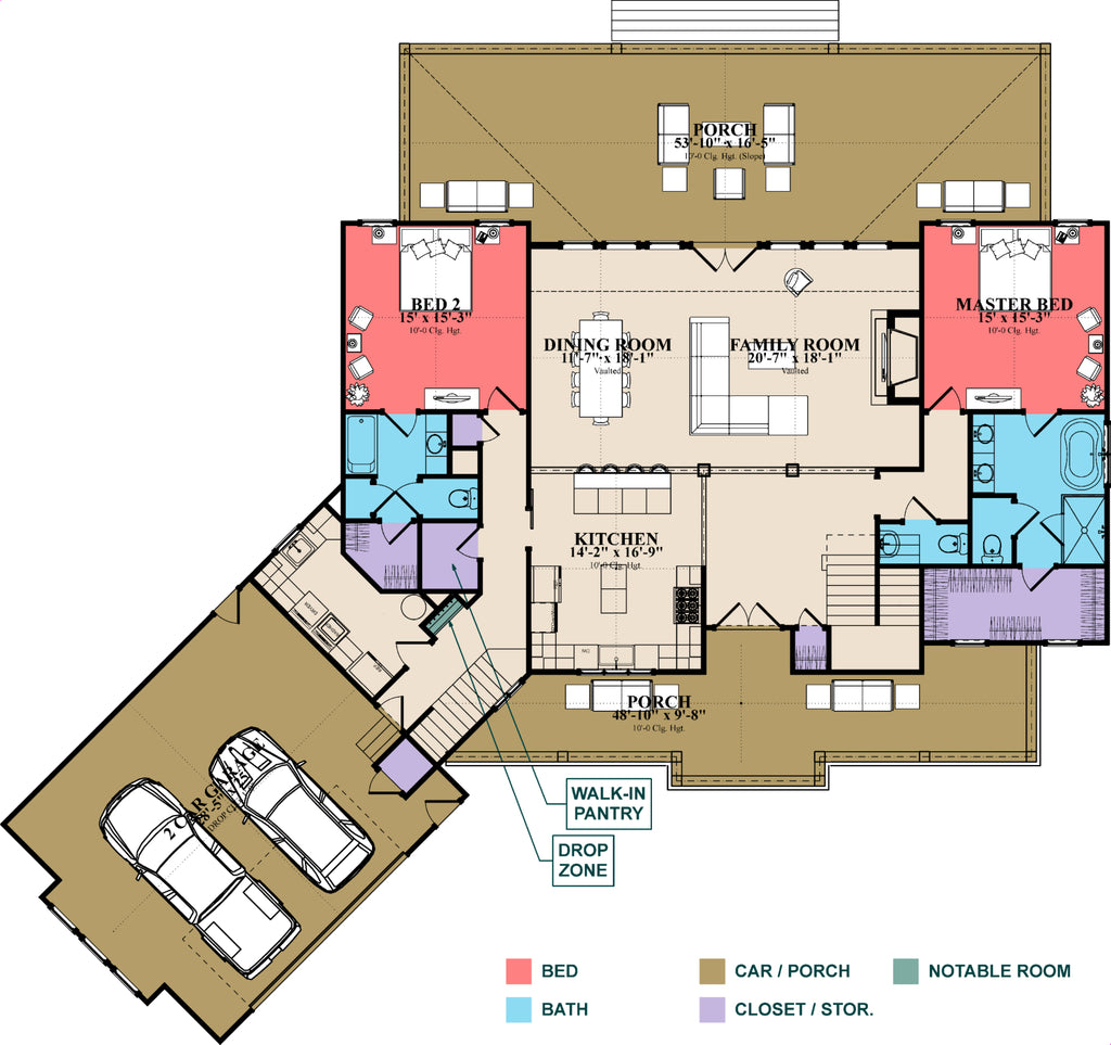 The 2-car front-load garage includes additional storage space, and the home’s 10-foot first-floor ceilings, 2x4 wall framing, and stick-framed 10:12 pitch roof complete this smart and stylish design.