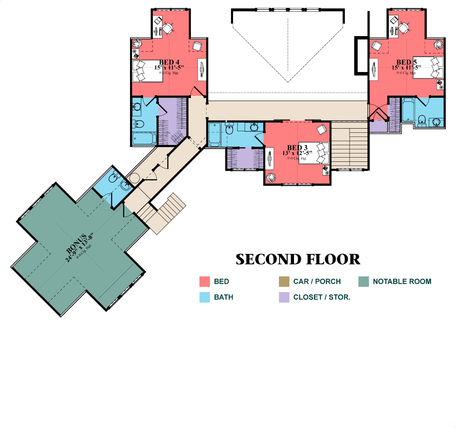 This stunning 5-bedroom, 5-bathroom home combines timeless stone-clad curb appeal with an expansive, open interior layout designed for modern family living. With 3,649 sq. ft. of heated living space and 1,248 sq. ft. of porches, this plan offers comfort, function, and luxury across two levels.
