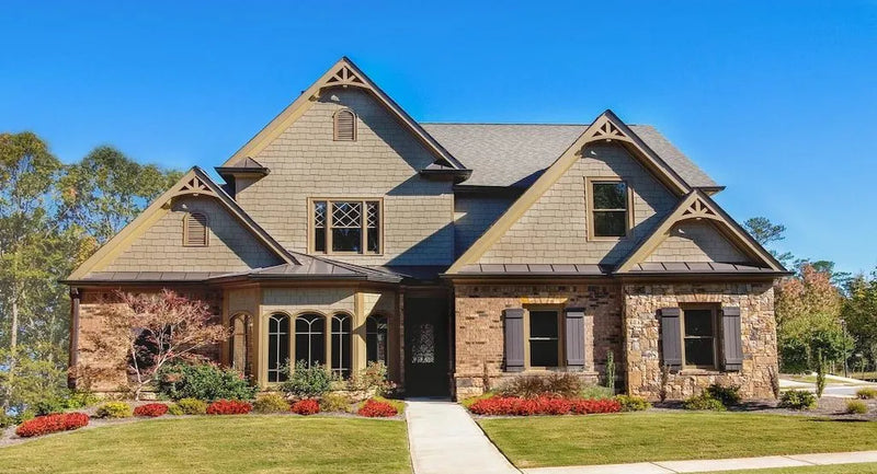 This craftsman house plan is perfect for empty nesters or a small family. The exterior of this custom home design is highlighted by shake and stone accents. The dining room is two-story with an attractive bay window wall. The family friendly kitchen is open to the breakfast room and grand room. The coffered ceiling and French doors are focal points in the large grand room. The spacious master suite offers a bay window and large walk-in closet with folding island. The second floor includes two additional bedrooms and a bonus room which could be used as a media room or office.